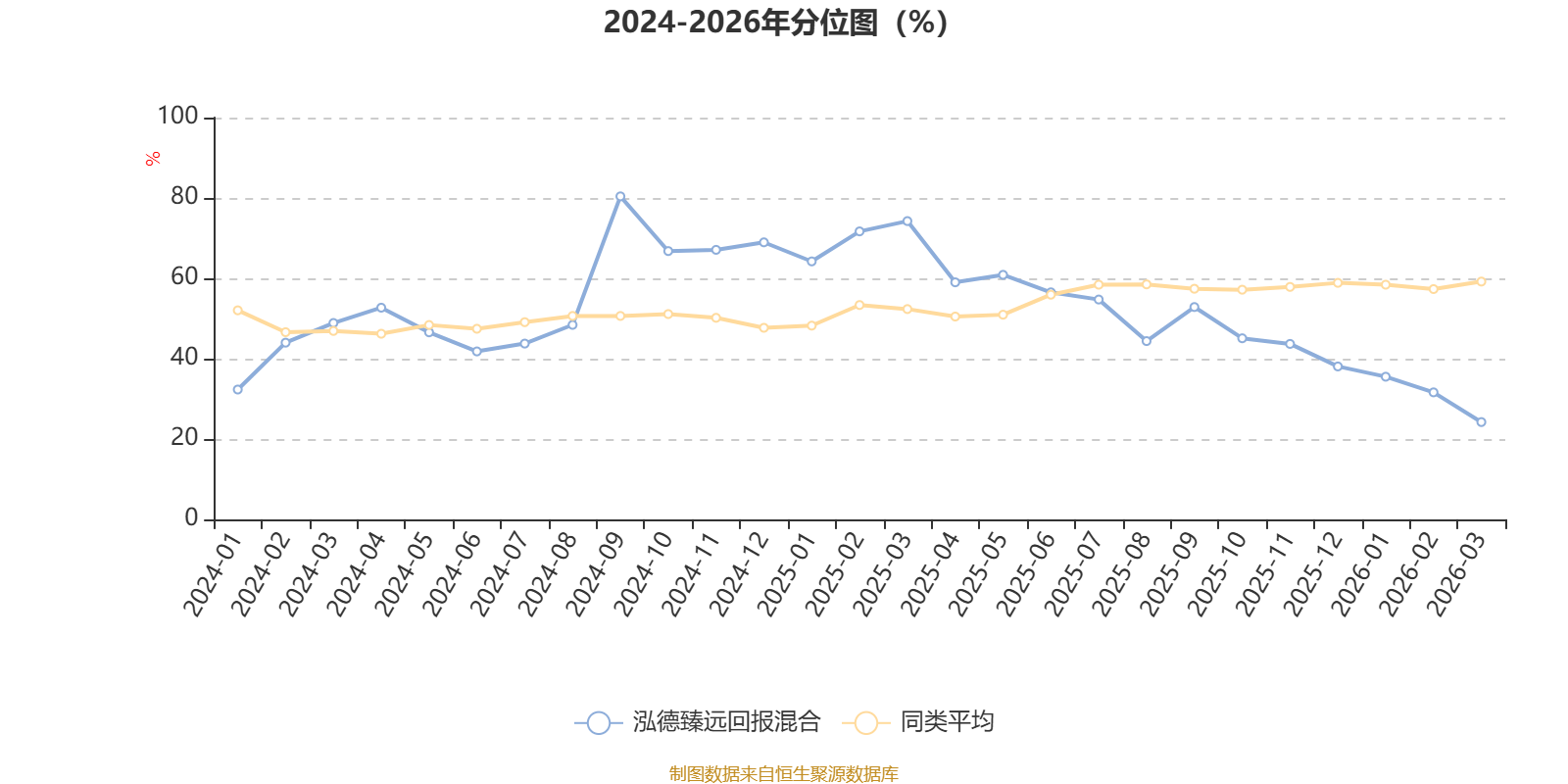 通过所选区间该基金净值增长率分位图,可以观察该基金与同类基金业绩比较情况。图为坐标原点到区间内某时点的净值增长率在同类基金中的分位数。
