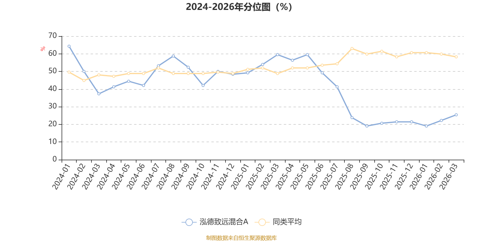 通过所选区间该基金净值增长率分位图,可以观察该基金与同类基金业绩比较情况。图为坐标原点到区间内某时点的净值增长率在同类基金中的分位数。
