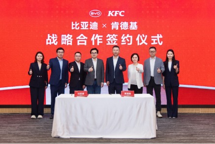 4月8日,比亚迪与肯德基在深圳比亚迪全球总部正式签署战略合作协议。双方聚焦智能出行与便捷餐饮服务场景,将肯德基“车速取”服务深度融入比亚迪现代出行生态,围绕车机联动点餐、门店配套闪充开展全方位合作,共同开创汽车产业与餐饮行业跨界融合的全新范式。