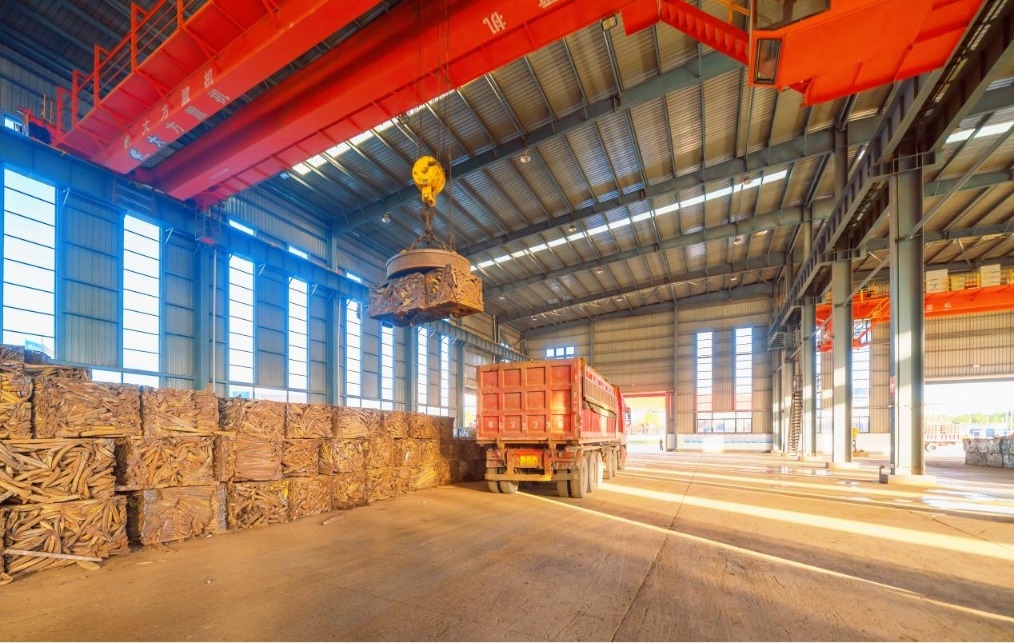 资环链金相关负责人说,2025年,资环链金与中国外运、中国石化等22家央国企建立战略合作,年度产废业务规模同比增长翻番。与中国外运合作的“平台+基地+物流”协同模式,打通了从产废源头到钢铁企业的“最后一公里”;深度打造三方循环回收模式,与美的集团、湛江钢铁形成稳定的“下产线、上平台、进钢厂”闭环合作链,推动优质废钢铁的循环利用。