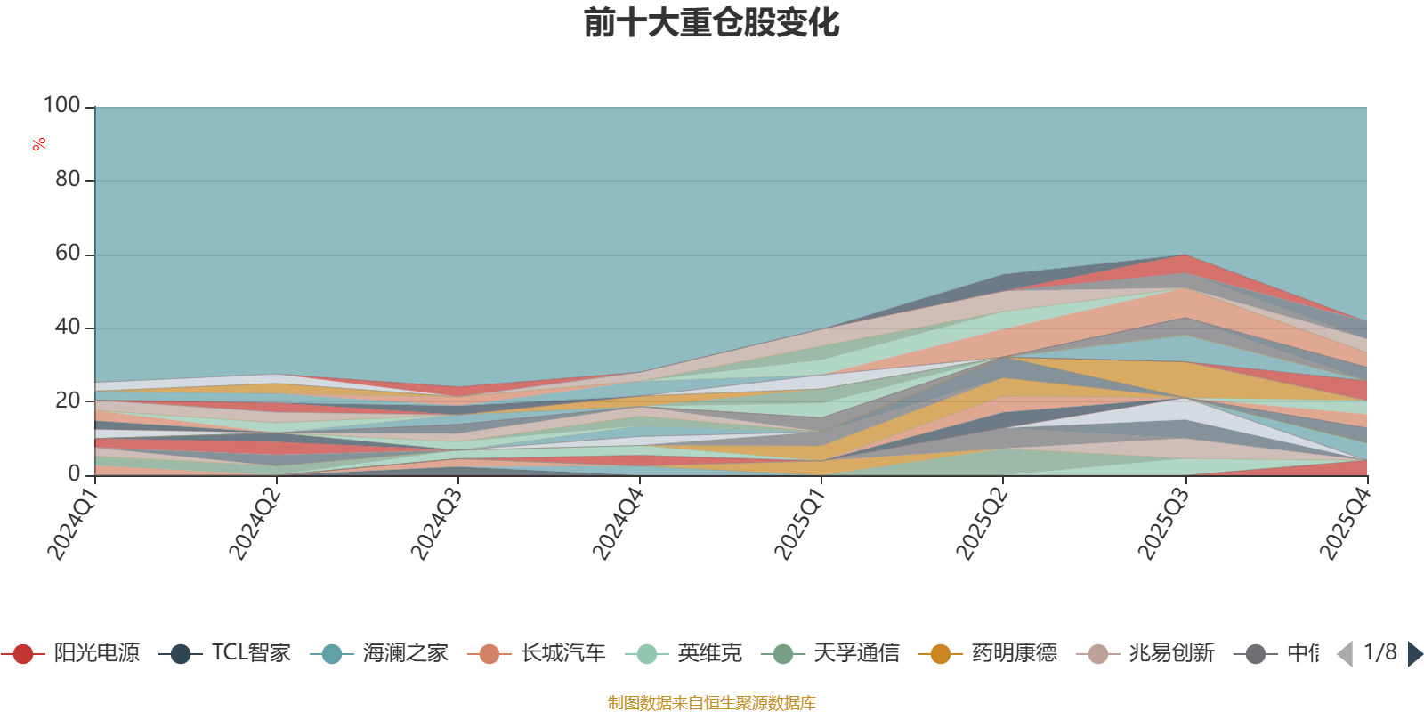 截至2025年末,基金十大重仓股分别是江西铜业、洛阳钼业、生益科技、阳光电源、工业富联、中际旭创、潍柴动力、上海银行、中国平安、奥士康。