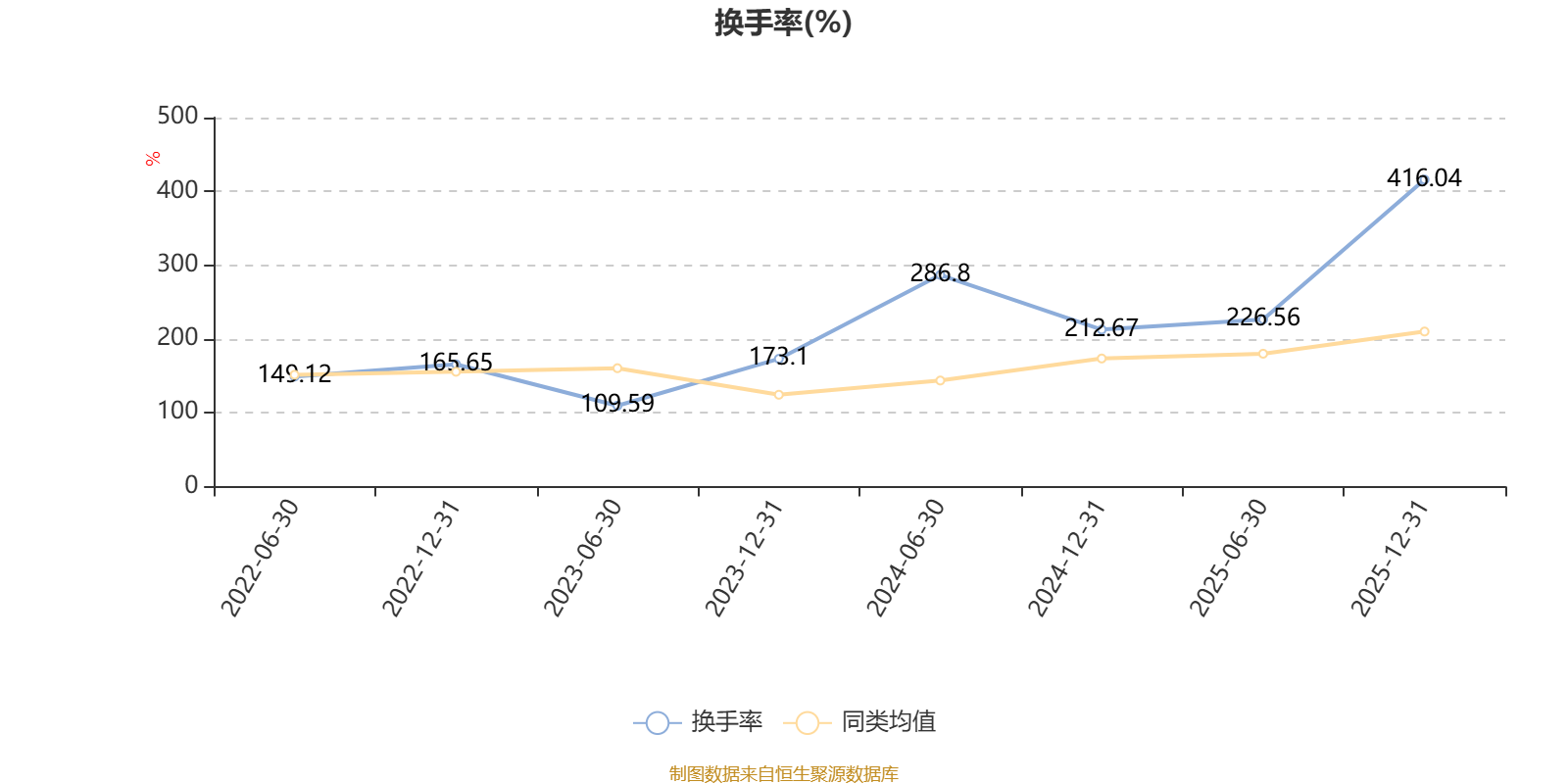截至2025年12月31日,基金最近一年换手率约655.68%,持续2年高于同类均值。