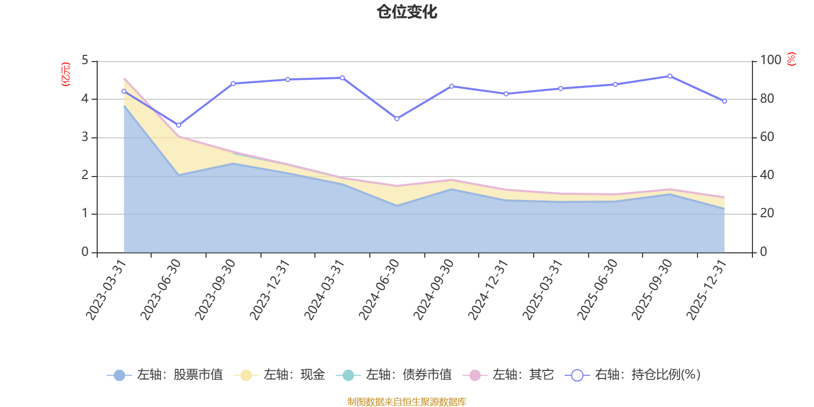 据定期报告数据统计,近三年平均股票仓位为83.74%,同类平均为85.83%。2025年三季度末基金达到92.13%的最高仓位,2023年上半年末最低,为66.53%。