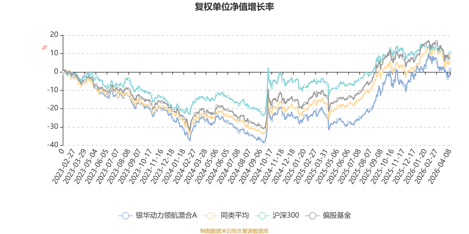 截至4月8日,银华动力领航混合A近三个月复权单位净值增长率为-0.42%,位于同类可比基金328/621;近半年复权单位净值增长率为1.53%,位于同类可比基金324/621;近一年复权单位净值增长率为47.25%,位于同类可比基金241/618;近三年复权单位净值增长率为1.58%,位于同类可比基金401/559。
