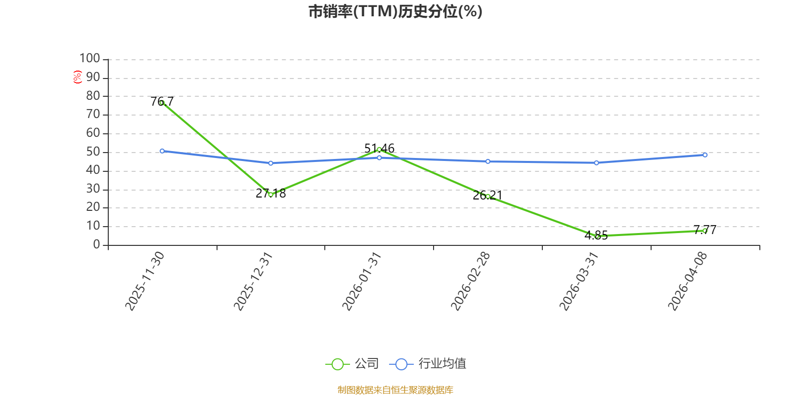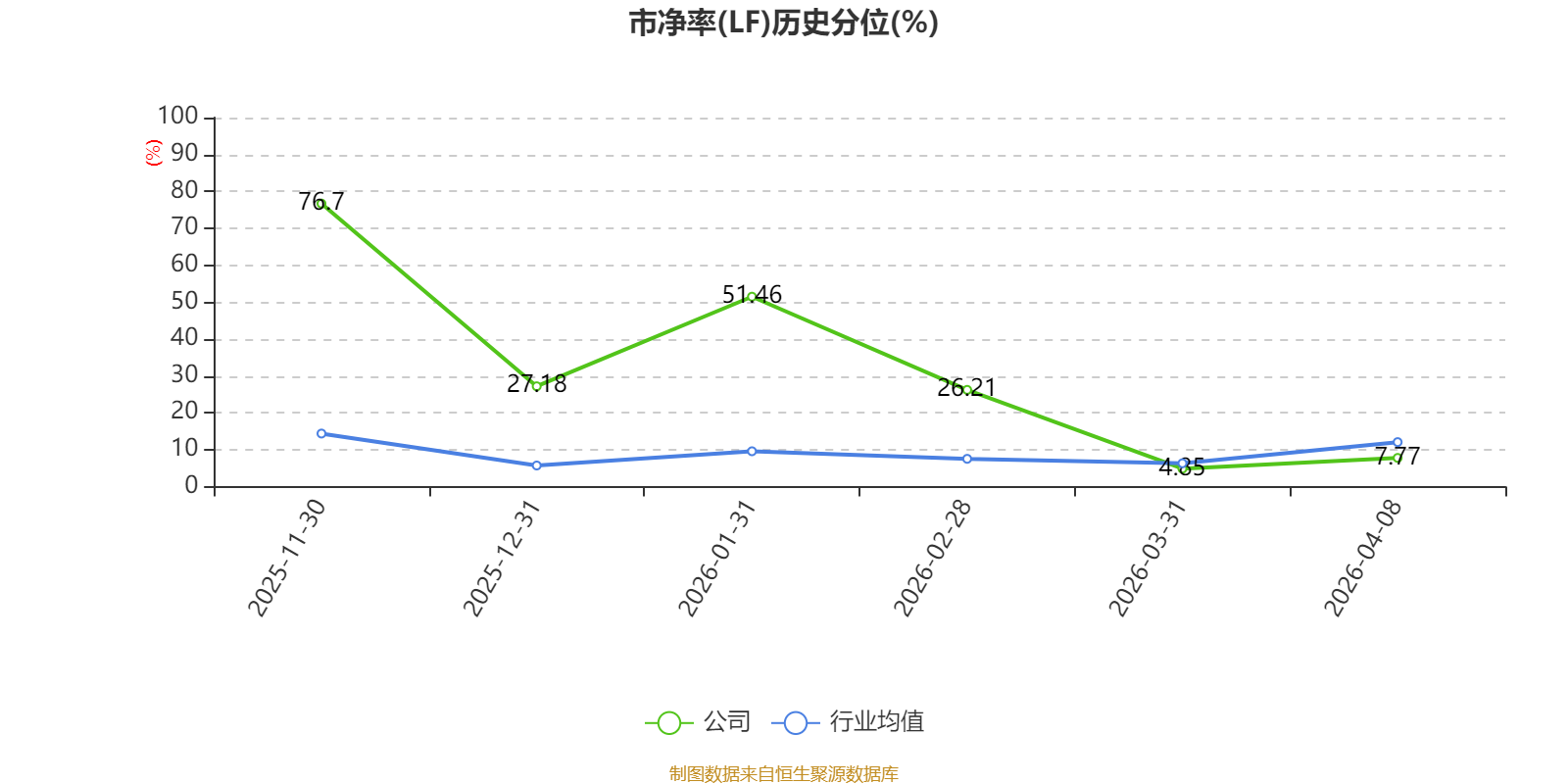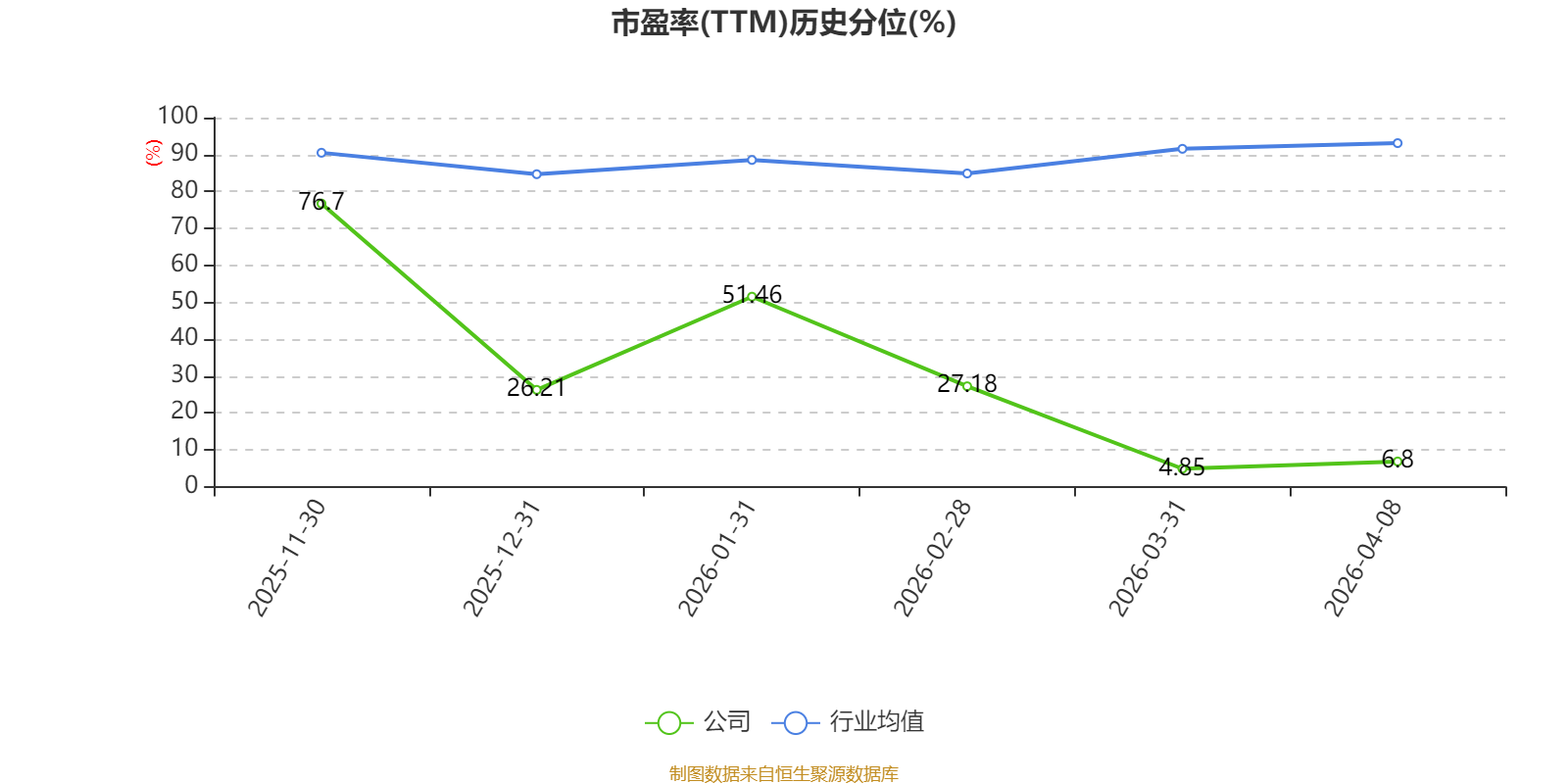 市盈率、市净率为负时,不显示当期分位数,会导致折线图中断。