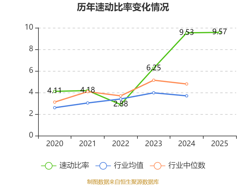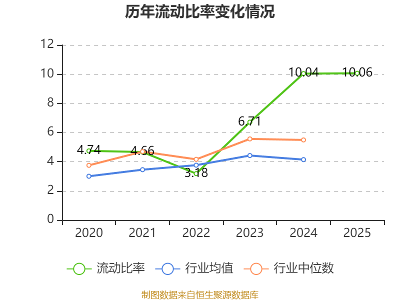 2025年,公司流动比率为10.06,速动比率为9.57。