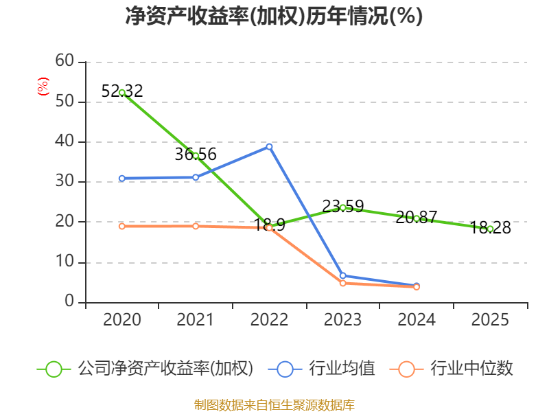 数据显示,2025年公司加权平均净资产收益率为18.28%,较上年同期下降2.59个百分点。公司2025年投入资本回报率为17%,较上年同期下降2.37个百分点。