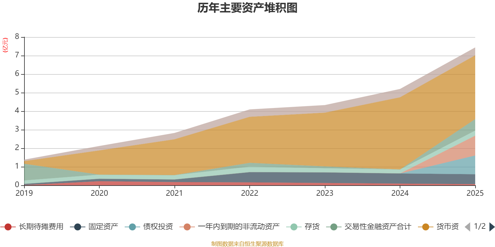 资产重大变化方面,截至2025年末,公司货币资金较上年末减少11.62%,占公司总资产比重下降28.7个百分点;一年内到期的非流动资产占公司总资产的14.39%,上年末为0;债权投资占公司总资产的13.61%,上年末为0;交易性金融资产合计占公司总资产的8.34%,上年末为0。