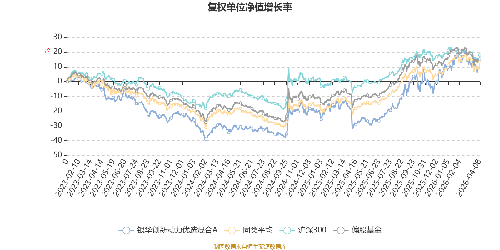截至4月8日,银华创新动力优选混合A近三个月复权单位净值增长率为3.85%,位于同类可比基金151/621;近半年复权单位净值增长率为10.63%,位于同类可比基金103/621;近一年复权单位净值增长率为69.45%,位于同类可比基金102/618;近三年复权单位净值增长率为16.86%,位于同类可比基金267/559。