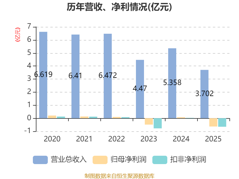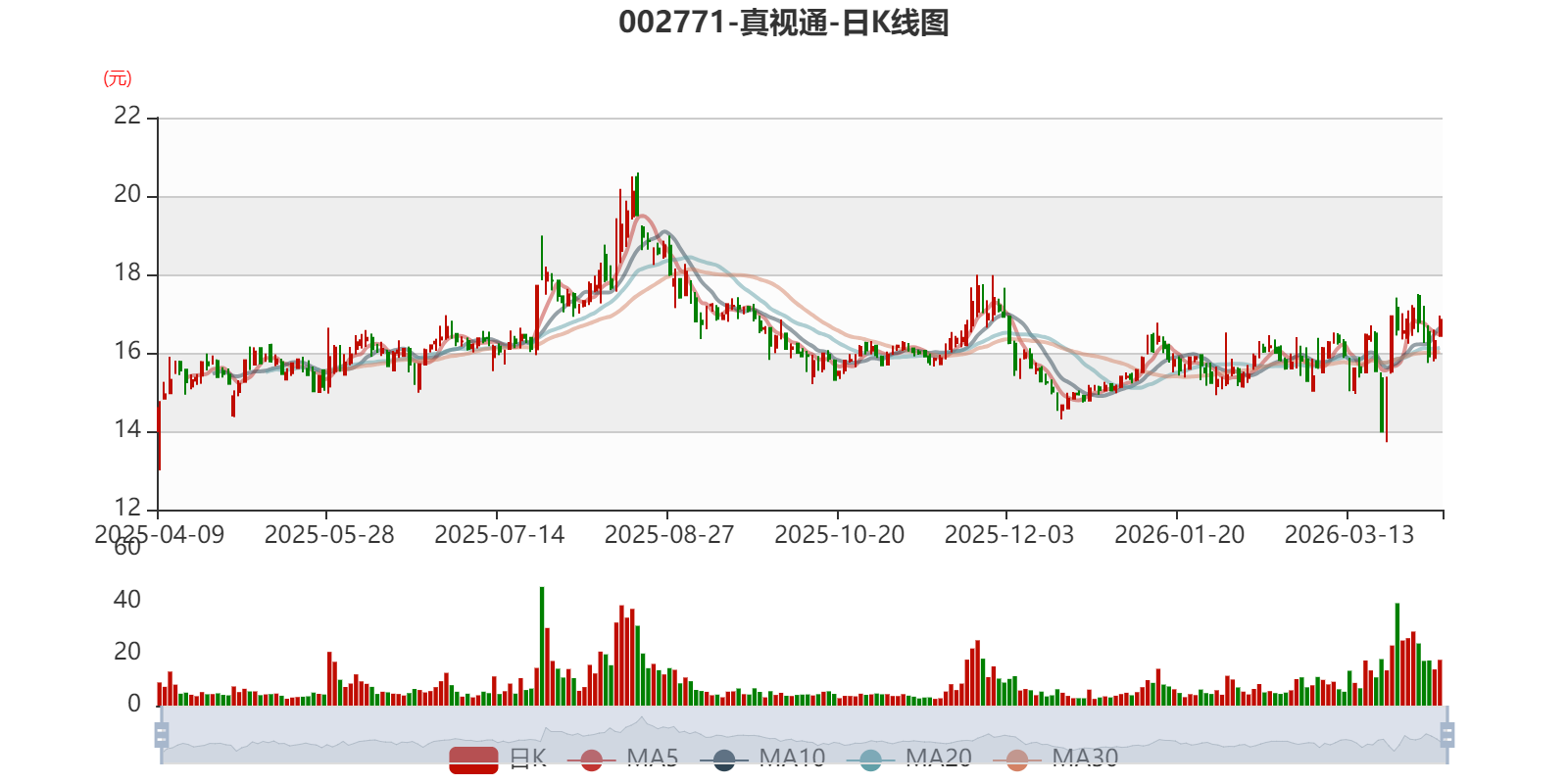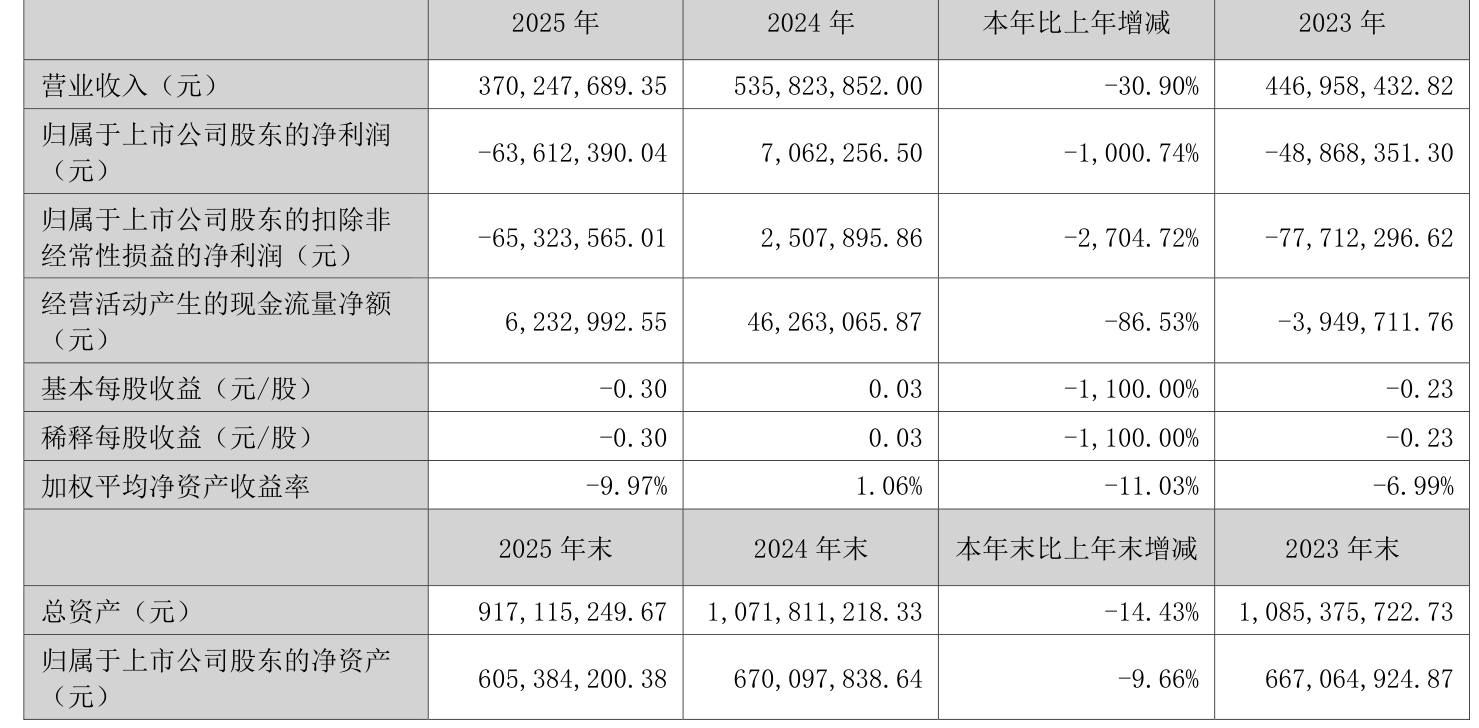 中证智能财讯真视通(002771)4月9日披露2025年年度报告。2025年,公司实现营业总收入3.7亿元,同比下降30.90%;归母净利润亏损6361.24万元,上年同期盈利706.23万元;扣非净利润亏损6532.36万元,上年同期盈利250.79万元;经营活动产生的现金流量净额为623.3万元,同比下降86.53%;报告期内,真视通基本每股收益为-0.3元,加权平均净资产收益率为-9.97%。