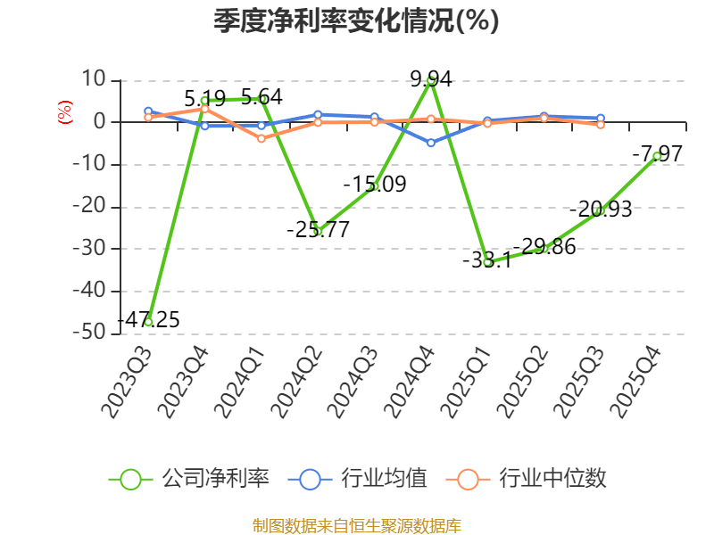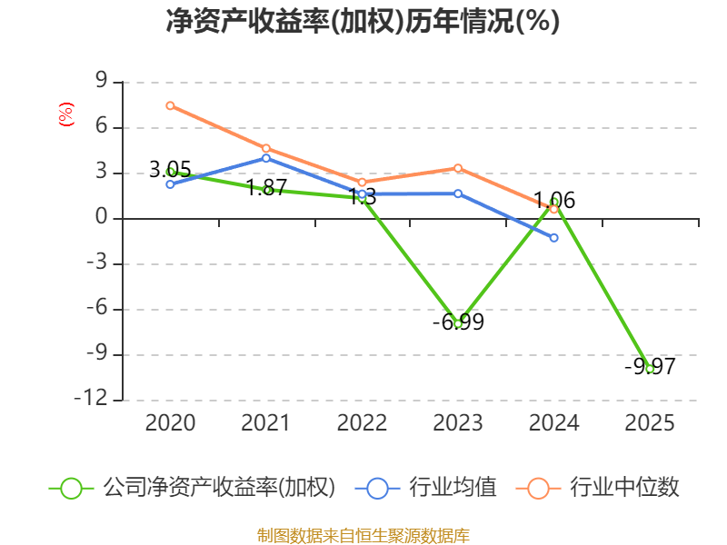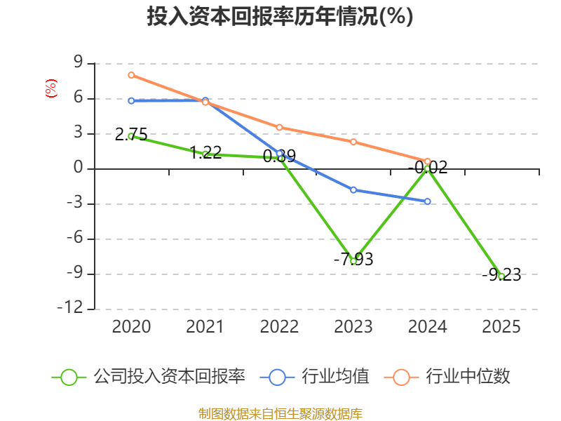 数据显示,2025年公司加权平均净资产收益率为-9.97%,较上年同期下降11.03个百分点。公司2025年投入资本回报率为-9.23%,较上年同期下降9.21个百分点。