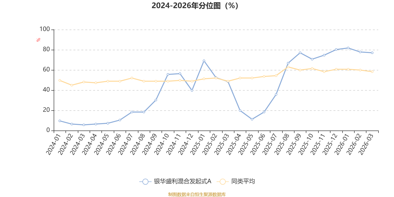 通过所选区间该基金净值增长率分位图,可以观察该基金与同类基金业绩比较情况。图为坐标原点到区间内某时点的净值增长率在同类基金中的分位数。