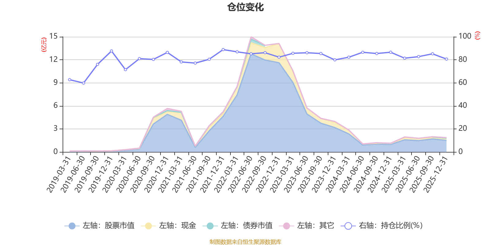 据定期报告数据统计,近三年平均股票仓位为83.99%,同类平均为67.52%。2021年末基金达到88.86%的最高仓位,2019年上半年末最低,为59.85%。