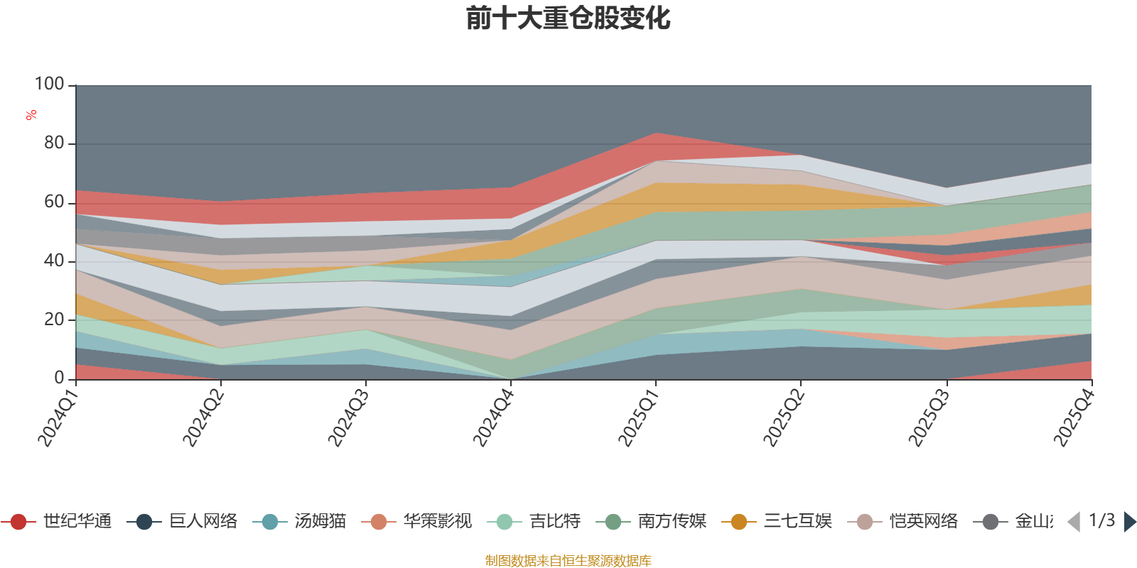 该基金持股集中度较高,近2年前十大重仓股集中度长期超过60%。截至2025年末,基金十大重仓股分别是恺英网络、吉比特、巨人网络、完美世界、焦点科技、三七互娱、世纪华通、鼎捷数智、卓易信息、金山办公。