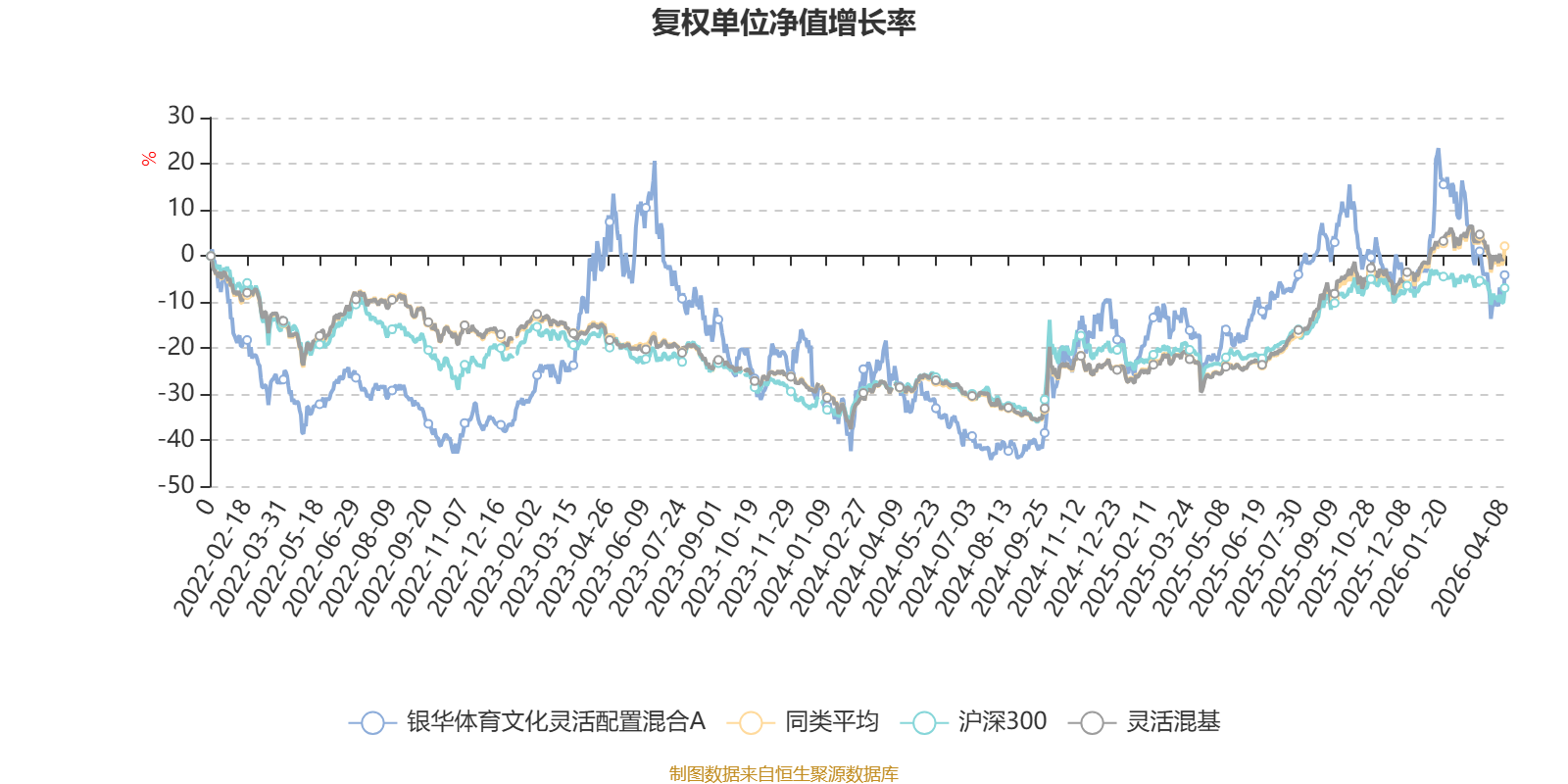 截至4月8日,银华体育文化灵活配置混合A近三个月复权单位净值增长率为-9.14%,位于同类可比基金1210/1287;近半年复权单位净值增长率为-14.25%,位于同类可比基金1241/1286;近一年复权单位净值增长率为30.36%,位于同类可比基金699/1286;近三年复权单位净值增长率为-4.71%,位于同类可比基金1038/1286。