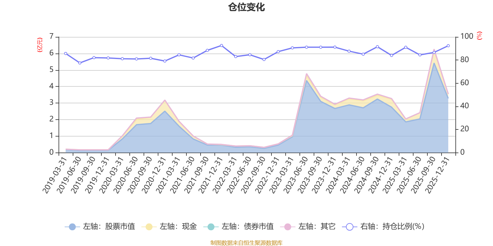 据定期报告数据统计,近三年平均股票仓位为88.89%,同类平均为72.57%。2021年末基金达到92.57%的最高仓位,2019年上半年末最低,为77.52%。