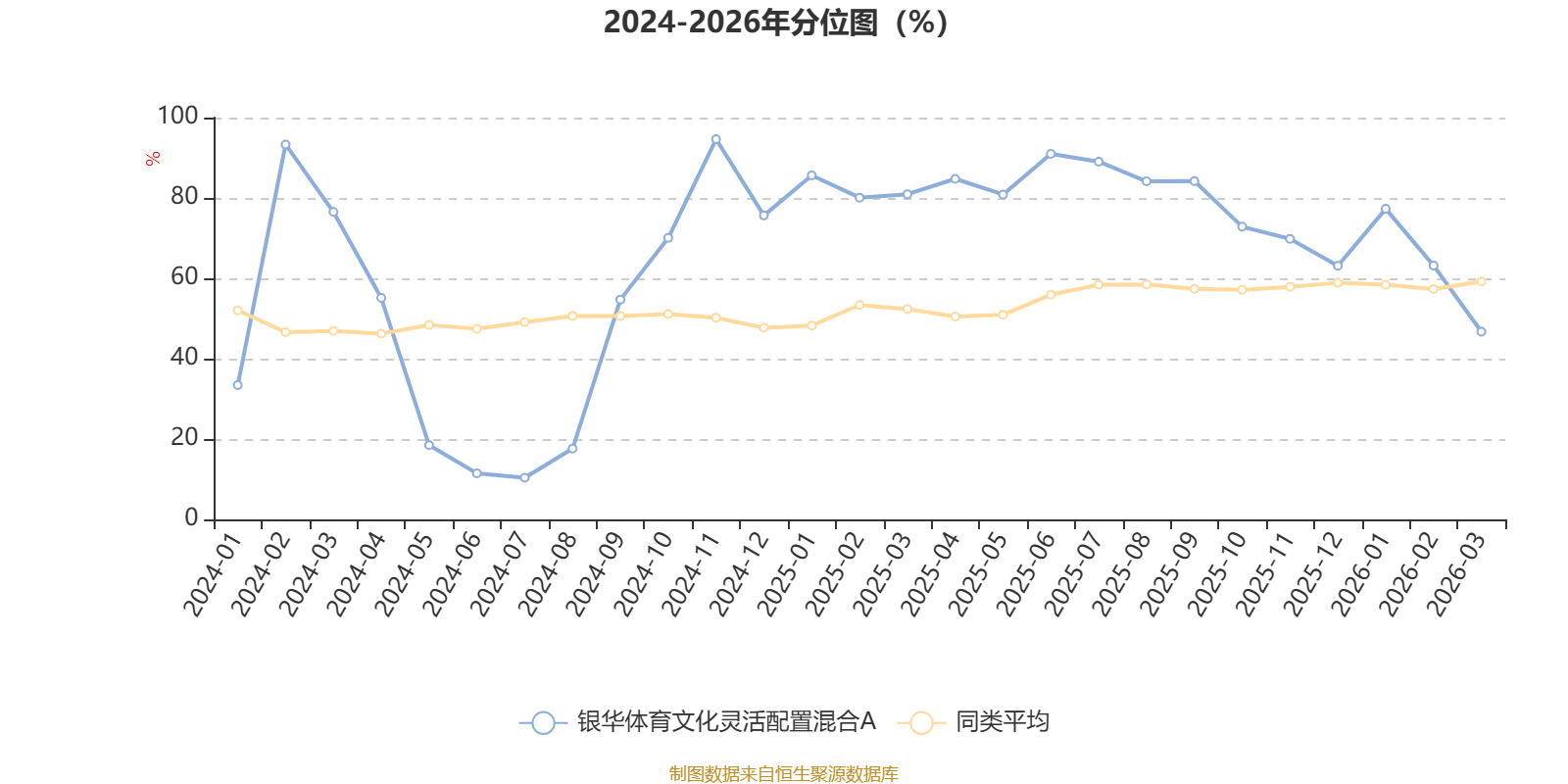 通过所选区间该基金净值增长率分位图,可以观察该基金与同类基金业绩比较情况。图为坐标原点到区间内某时点的净值增长率在同类基金中的分位数。