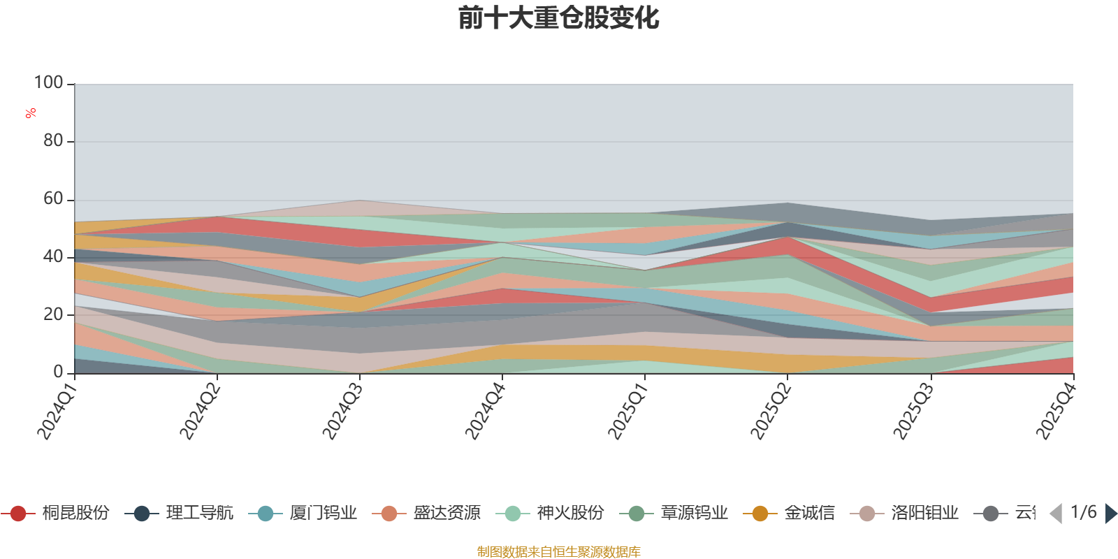 该基金持股集中度较高。截至2025年末,基金十大重仓股分别是陕西煤业、中国海油、桐昆股份、神火股份、中稀有色、中钨高新、潞安环能、新凤鸣、中航沈飞、山煤国际。