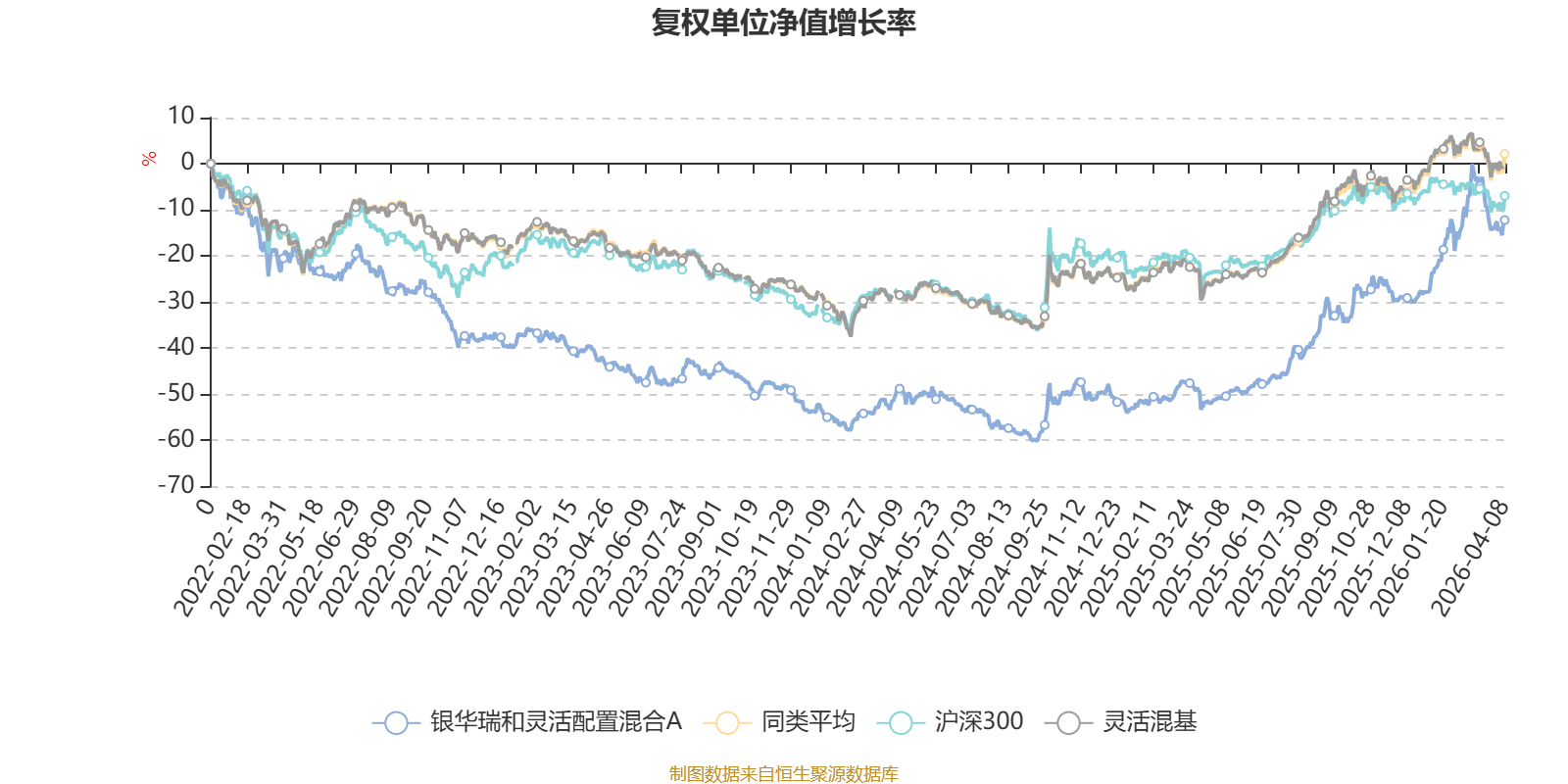 截至4月8日,银华瑞和灵活配置混合A近三个月复权单位净值增长率为15.21%,位于同类可比基金43/1287;近半年复权单位净值增长率为26.10%,位于同类可比基金52/1286;近一年复权单位净值增长率为85.98%,位于同类可比基金126/1286;近三年复权单位净值增长率为46.69%,位于同类可比基金168/1286。