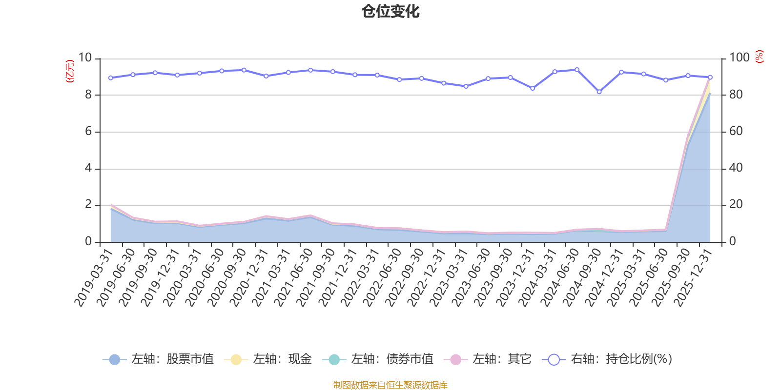 据定期报告数据统计,近三年平均股票仓位为89.06%,同类平均为72.57%。2024年上半年末基金达到93.9%的最高仓位,2024年三季度末最低,为81.85%。