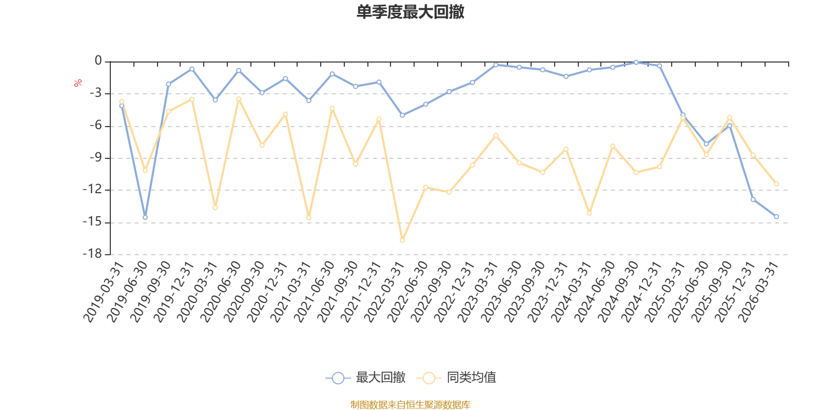 截至4月7日,基金近三年最大回撤为14.5%,同类可比基金排名184/1264。单季度最大回撤出现在2019年二季度,为14.54%。