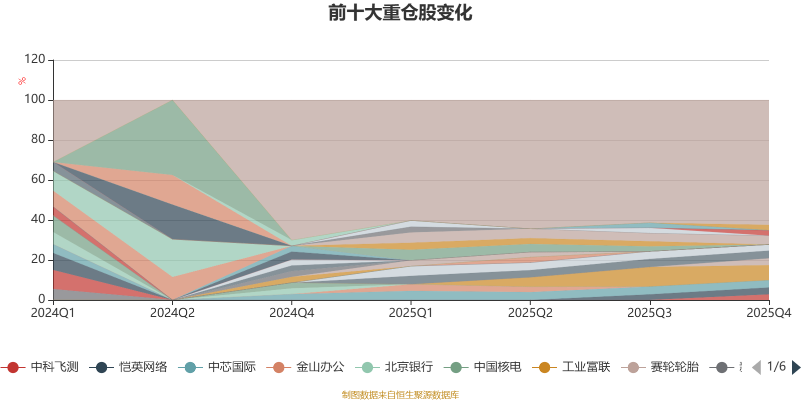 截至2025年末,基金十大重仓股分别是工业富联、北方华创、海光信息、中芯国际、恺英网络、赛轮轮胎、歌尔股份、中科飞测、中际旭创、中国中免。