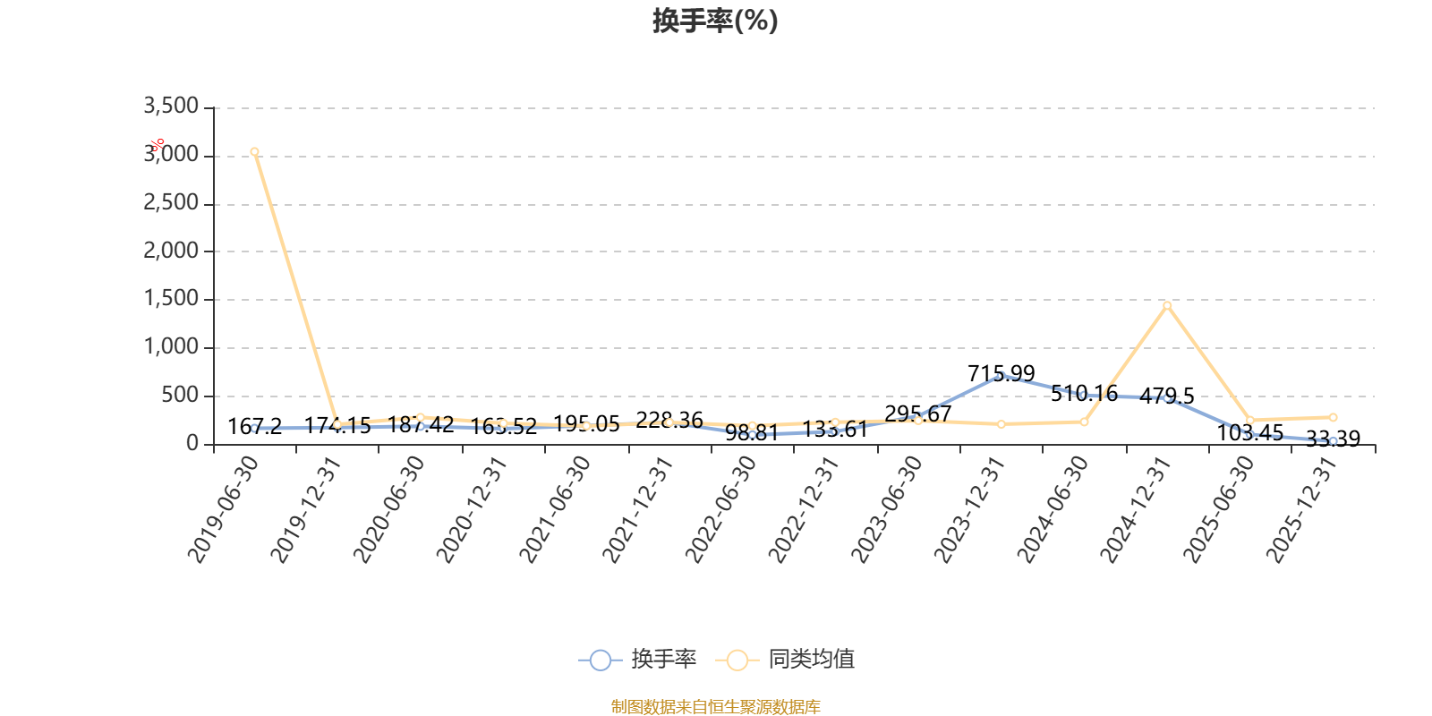 截至2025年12月31日,基金最近一年换手率约111.46%,持续1年低于同类均值。