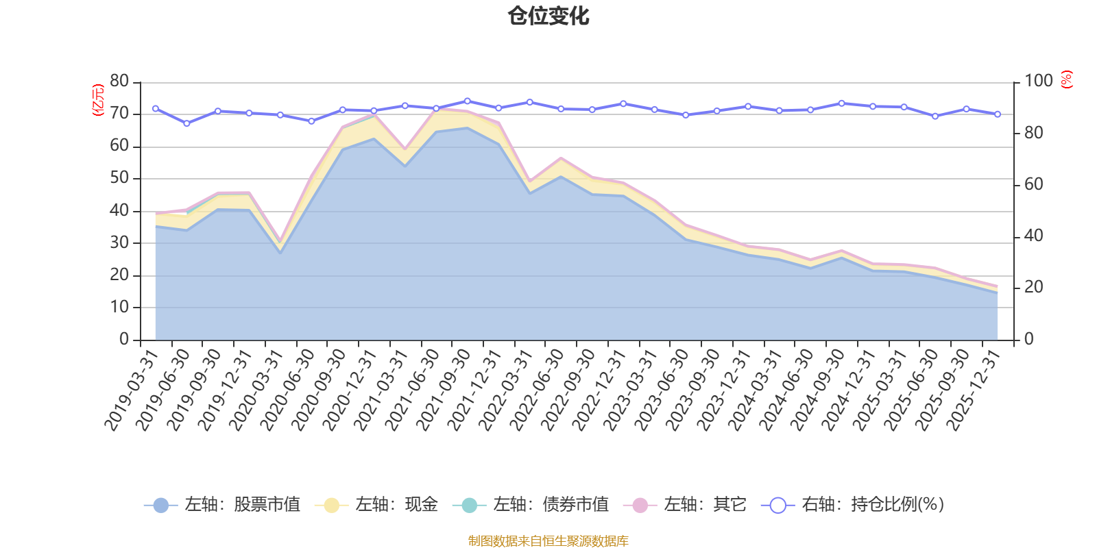 据定期报告数据统计,近三年平均股票仓位为89.27%,同类平均为72.57%。2021年三季度末基金达到92.71%的最高仓位,2019年上半年末最低,为84.03%。