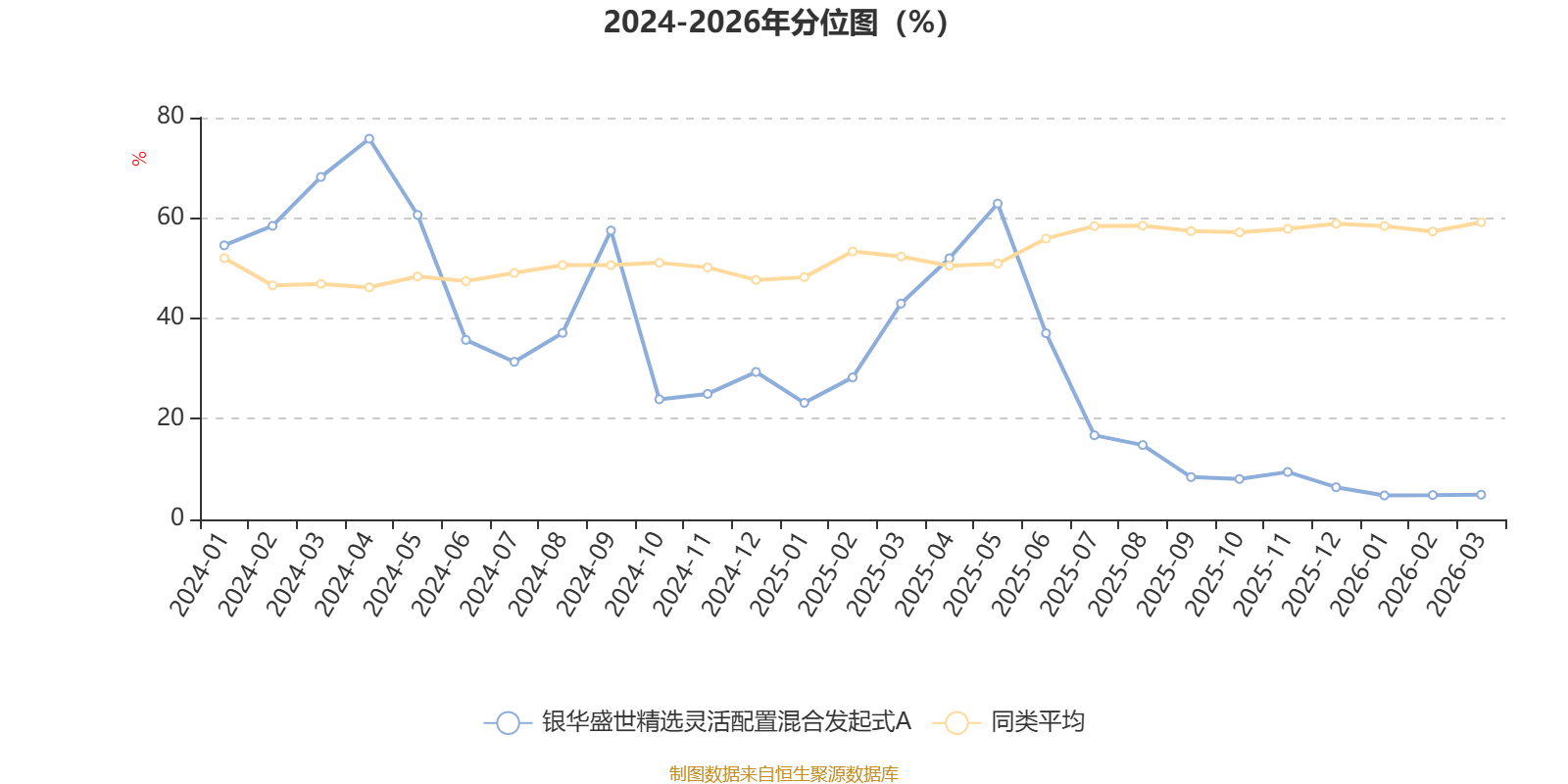 通过所选区间该基金净值增长率分位图,可以观察该基金与同类基金业绩比较情况。图为坐标原点到区间内某时点的净值增长率在同类基金中的分位数。