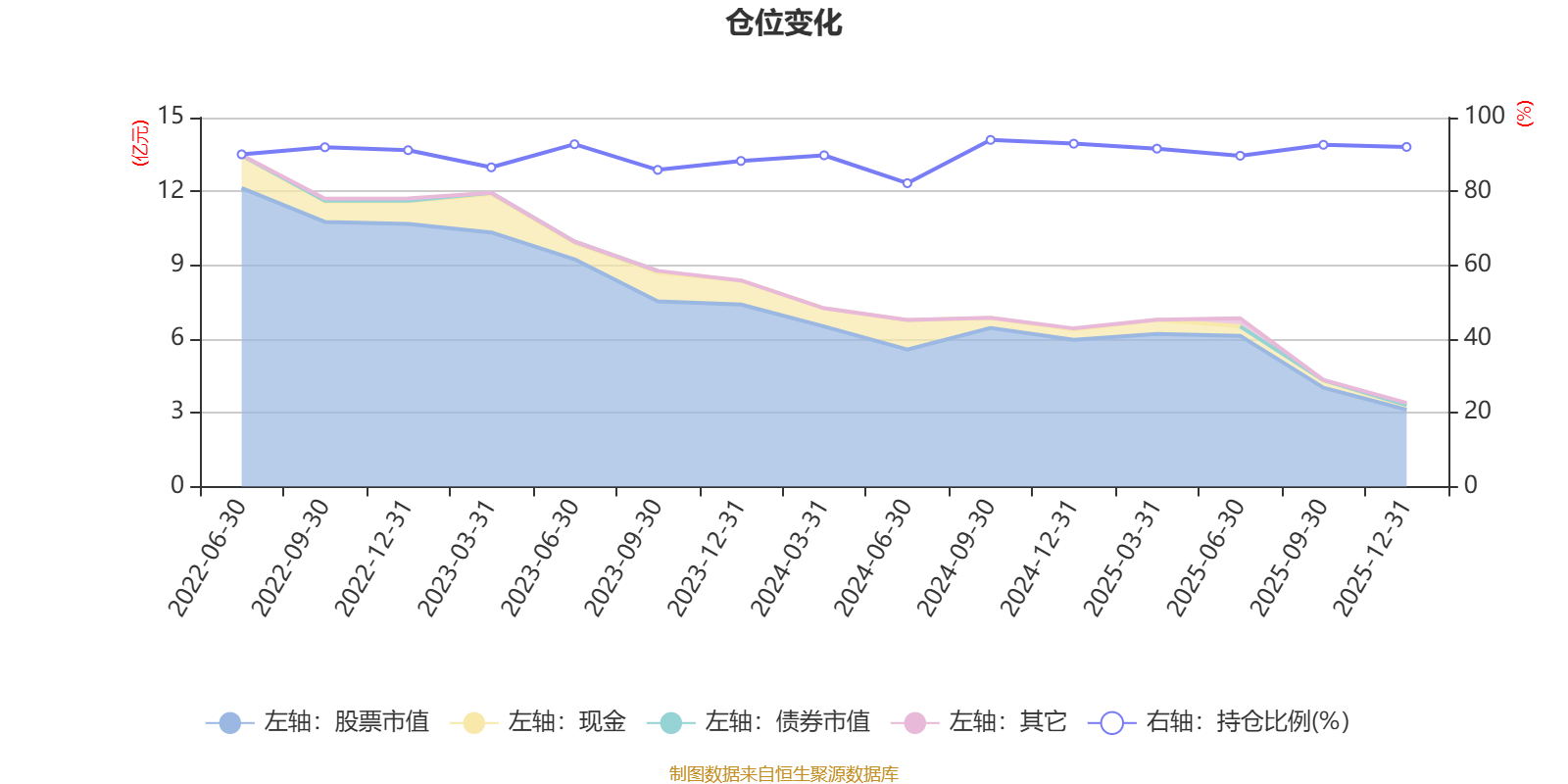 据定期报告数据统计,近三年平均股票仓位为89.85%,同类平均为85.83%。2024年三季度末基金达到93.96%的最高仓位,2024年上半年末最低,为82.22%。