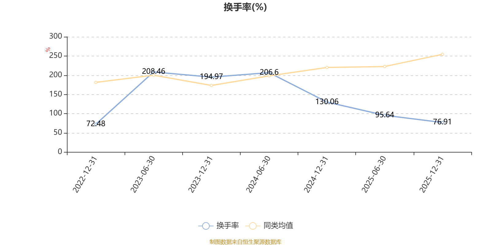 截至2025年12月31日,基金最近一年换手率约181.49%,持续1年低于同类均值。