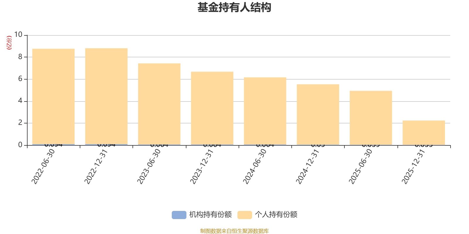 截至2025年12月31日,基金持有人共计3718户,合计持有2.24亿份。其中管理人员工持有139.54万份,占比0.62%,机构持有份额占比1.55%,个人投资者占比98.45%。