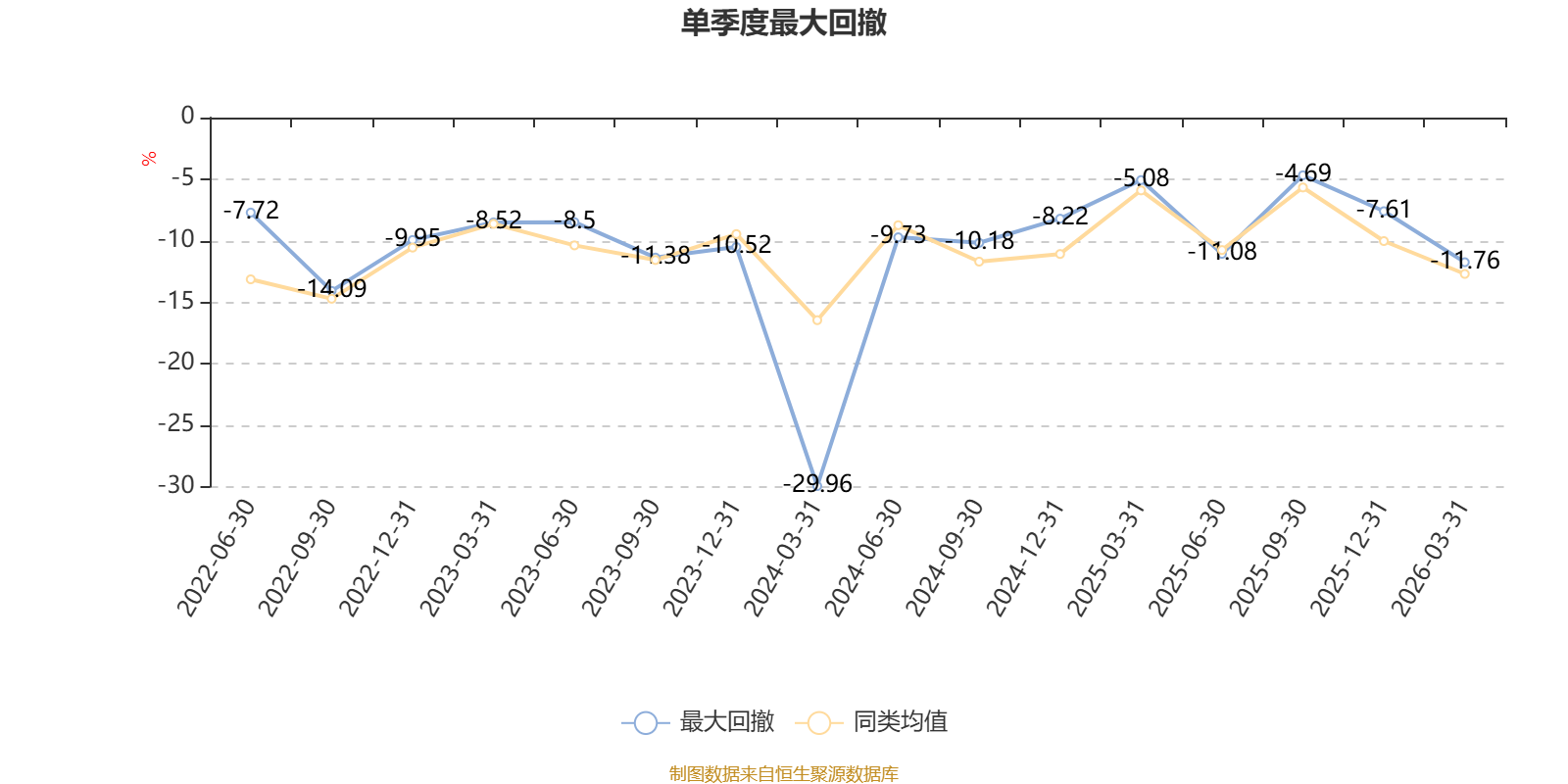 截至4月7日,基金近三年最大回撤为36.36%,同类可比基金排名367/551。单季度最大回撤出现在2024年一季度,为29.96%。