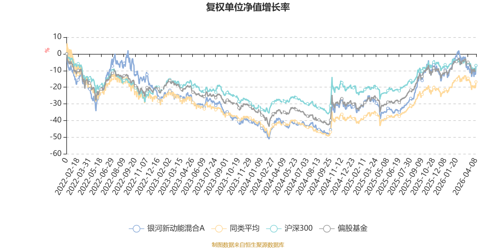 截至4月8日,银河新动能混合A近三个月复权单位净值增长率为-2.53%,位于同类可比基金410/621;近半年复权单位净值增长率为-1.71%,位于同类可比基金418/621;近一年复权单位净值增长率为52.61%,位于同类可比基金200/618;近三年复权单位净值增长率为20.73%,位于同类可比基金243/559。