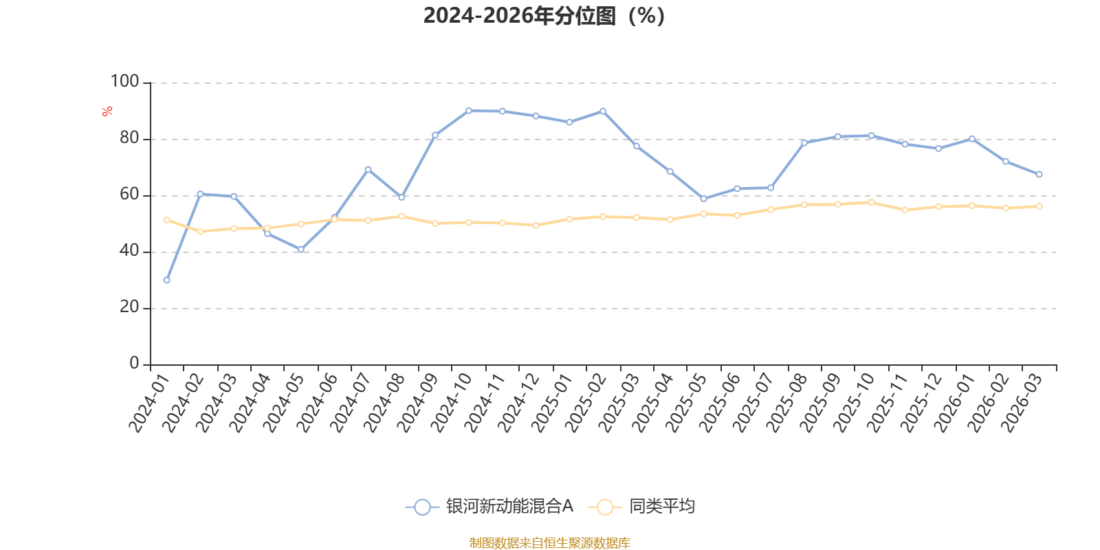 通过所选区间该基金净值增长率分位图,可以观察该基金与同类基金业绩比较情况。图为坐标原点到区间内某时点的净值增长率在同类基金中的分位数。