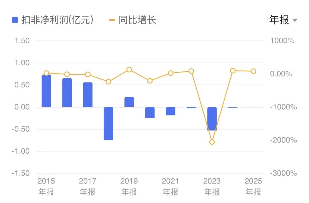 根据金枫酒业一周前披露的财报,2025年公司营业收入仅5.28亿元,同比下滑8.67%,与十年前相比规模已腰斩;归母净利润204.04万元,同比下滑64.59%。