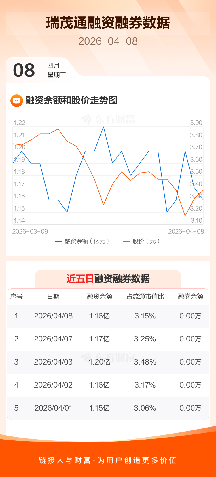 交易所最新数据显示,瑞茂通于2026年4月8日获融资买入436.34万元,融资偿还525.48万元,当日融资净偿还89.13万元。目前,该股融资余额1.16亿,占流通市值比例为3.15%。