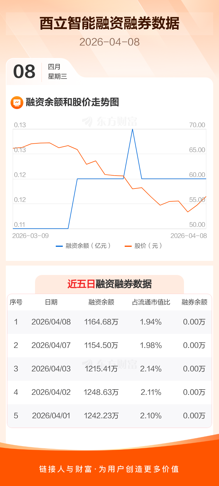 交易所最新数据显示,酉立智能于2026年4月8日获融资买入19.16万元,融资偿还8.98万元,当日融资净买入10.18万元。目前,该股融资余额1164.68万,占流通市值比例为1.94%。