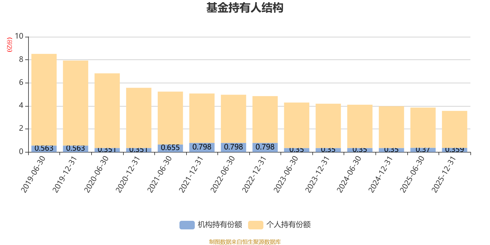 截至2025年12月31日,基金持有人共计2.27万户,合计持有3.57亿份。其中管理人员工持有8.37万份,占比0.02%,机构持有份额占比10.07%,个人投资者占比89.93%。