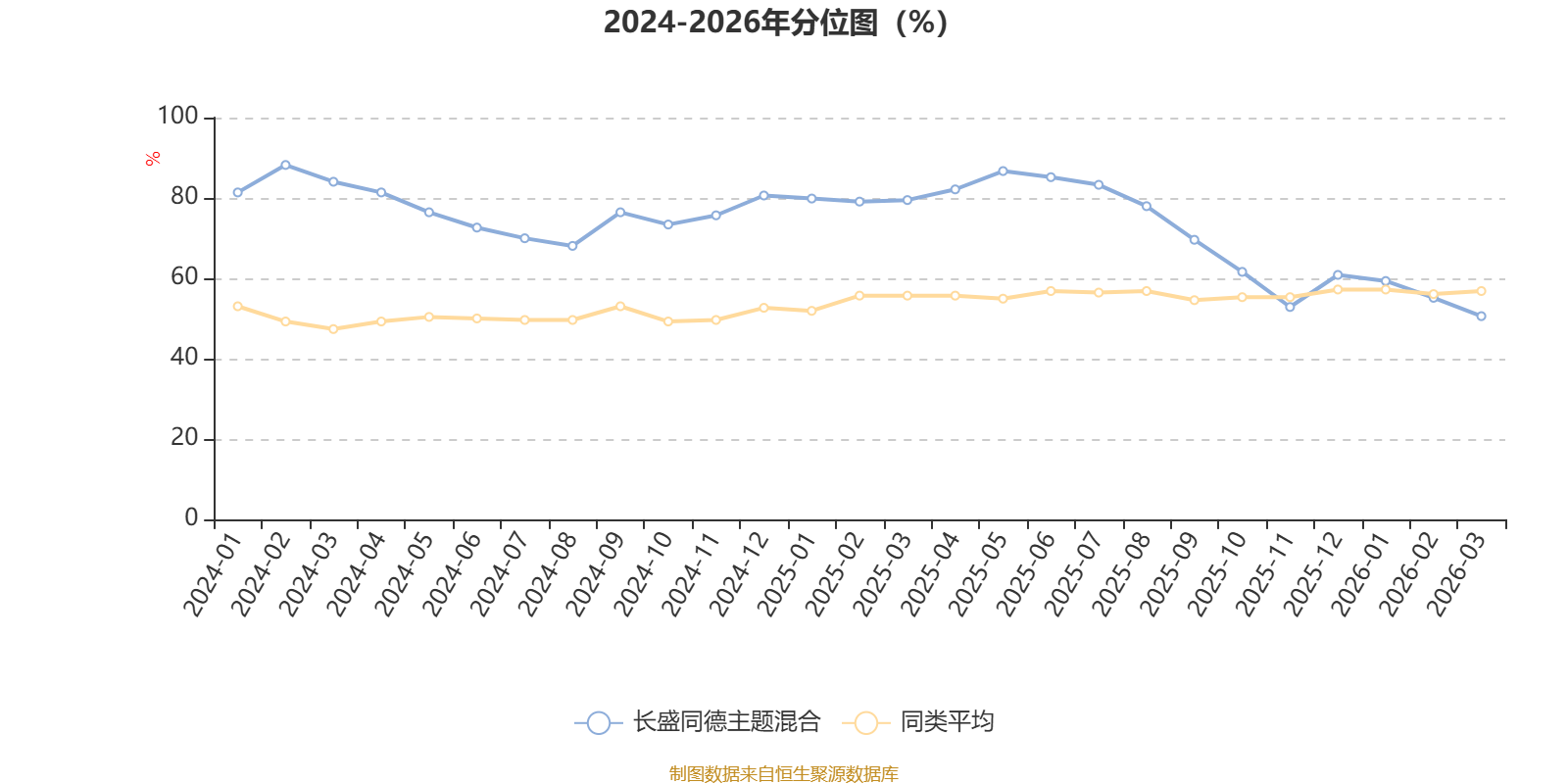 通过所选区间该基金净值增长率分位图,可以观察该基金与同类基金业绩比较情况。图为坐标原点到区间内某时点的净值增长率在同类基金中的分位数。