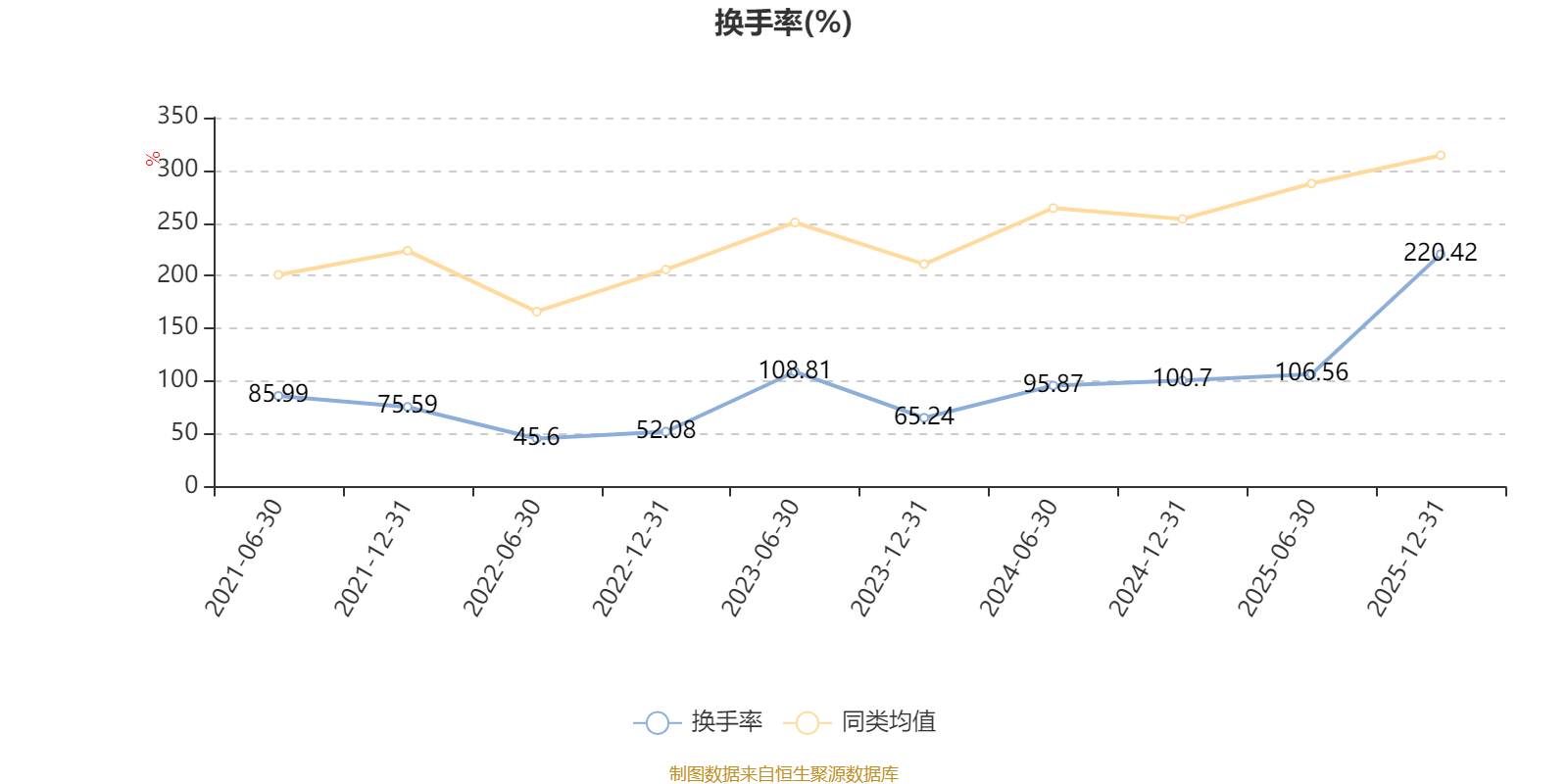截至2025年12月31日,基金最近一年换手率约325.02%,持续低于同类均值。