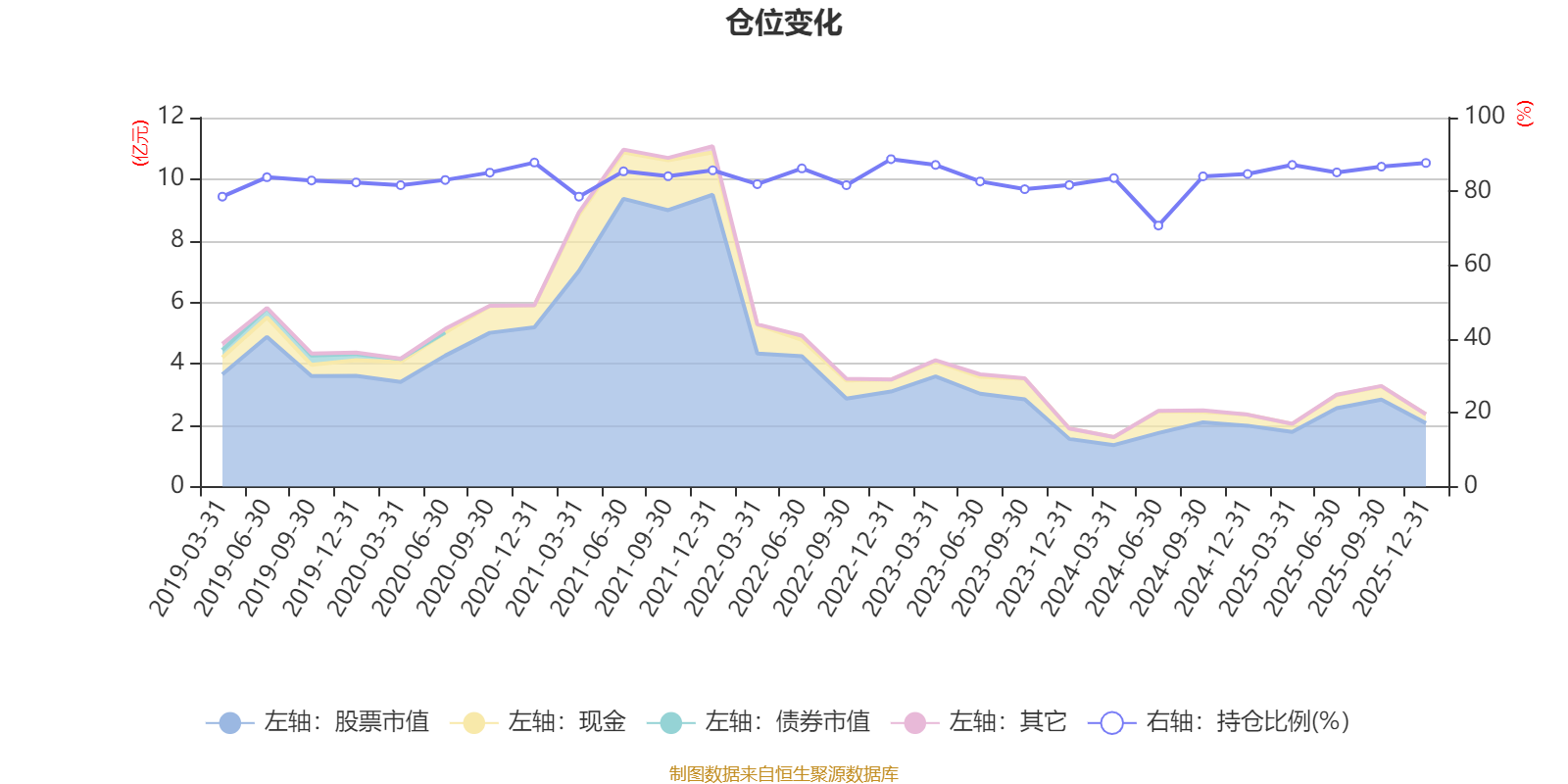 据定期报告数据统计,近三年平均股票仓位为83.51%,同类平均为72.57%。2022年末基金达到88.74%的最高仓位,2024年上半年末最低,为70.75%。