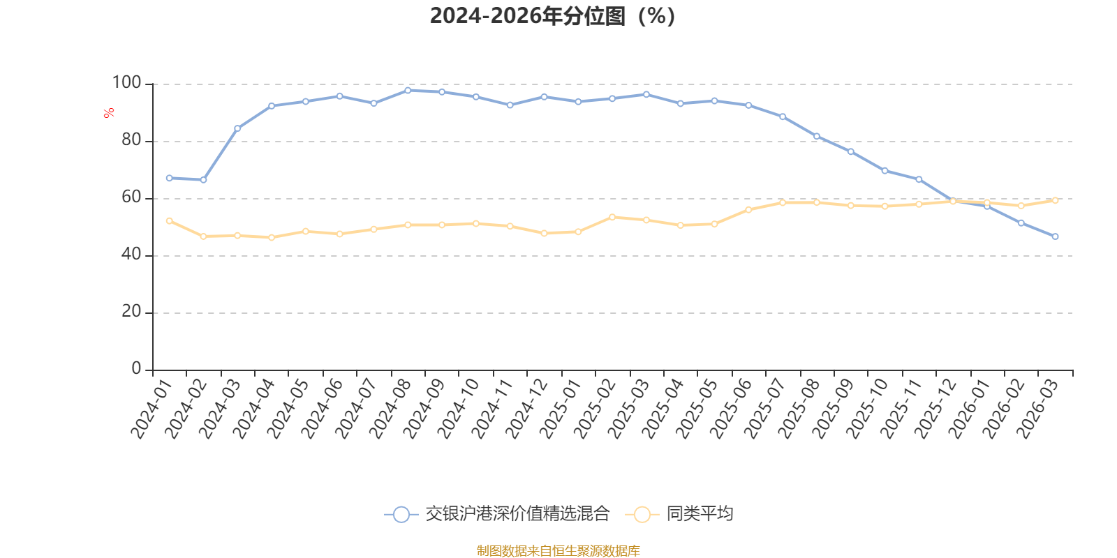 通过所选区间该基金净值增长率分位图,可以观察该基金与同类基金业绩比较情况。图为坐标原点到区间内某时点的净值增长率在同类基金中的分位数。