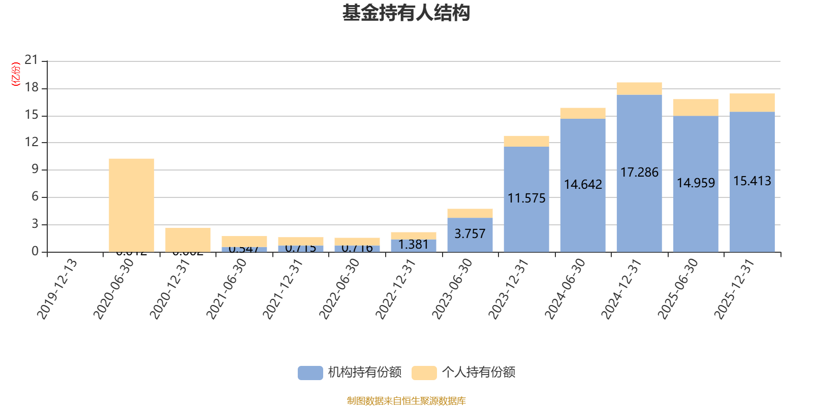 截至2025年12月31日,基金持有人共计2.78万户,合计持有17.42亿份。其中管理人员工持有89.77万份,占比0.05%,机构持有份额占比88.45%,个人投资者占比11.55%。