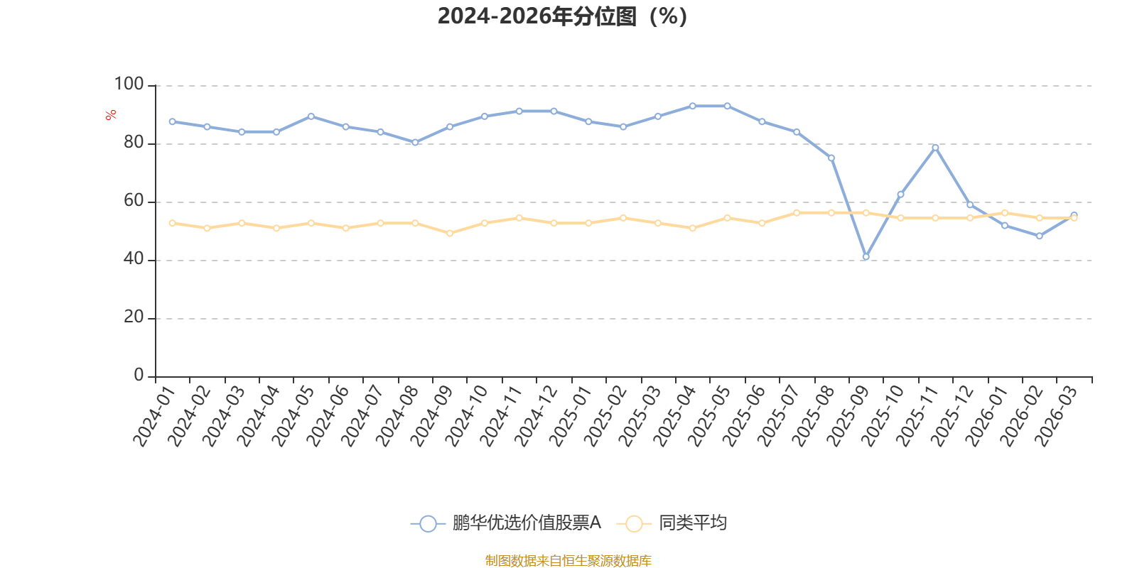 通过所选区间该基金净值增长率分位图,可以观察该基金与同类基金业绩比较情况。图为坐标原点到区间内某时点的净值增长率在同类基金中的分位数。