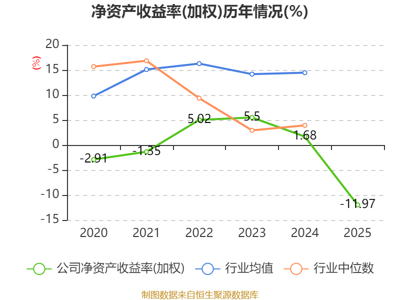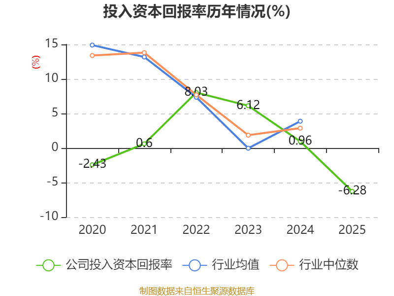数据显示,2025年公司加权平均净资产收益率为-11.97%,较上年同期下降13.65个百分点。公司2025年投入资本回报率为-6.28%,较上年同期下降7.24个百分点。