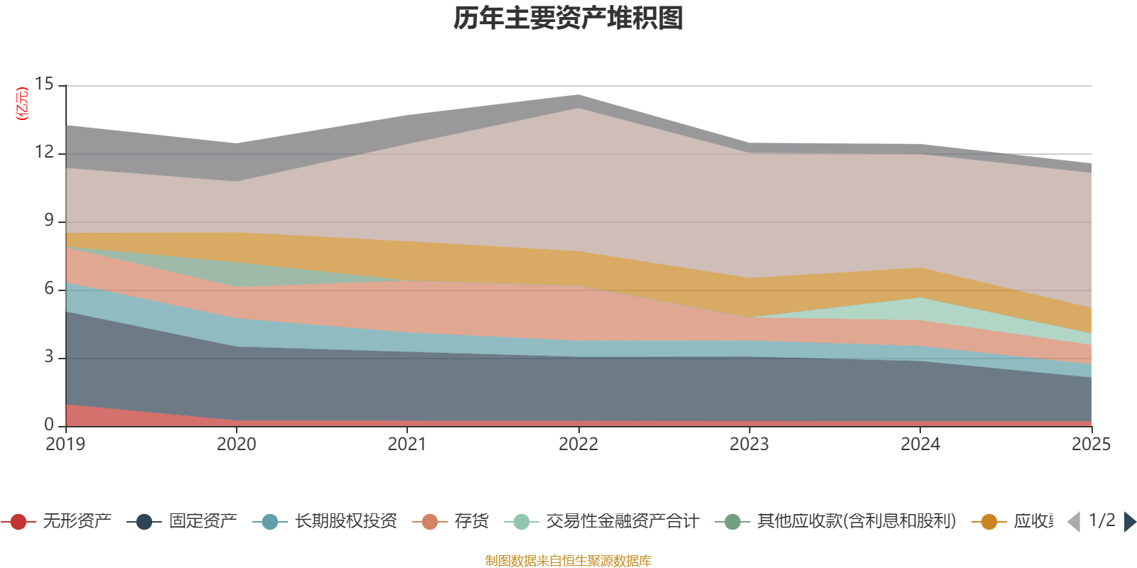 资产重大变化方面,截至2025年末,公司货币资金较上年末增加18.7%,占公司总资产比重上升11.04个百分点;固定资产较上年末减少27.04%,占公司总资产比重下降4.62个百分点;交易性金融资产合计较上年末减少49.98%,占公司总资产比重下降3.73个百分点;存货较上年末减少25.1%,占公司总资产比重下降1.79个百分点。