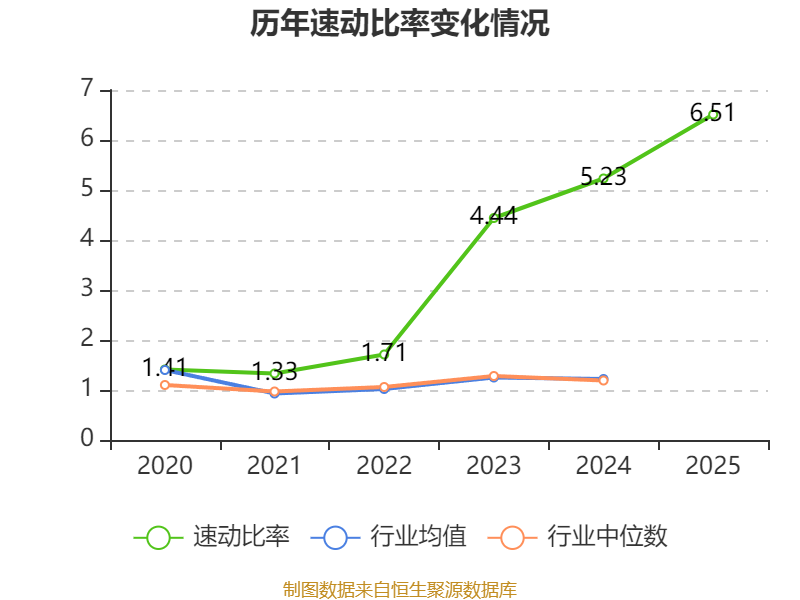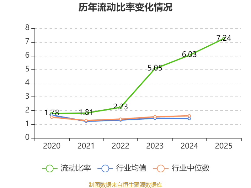 2025年,公司流动比率为7.24,速动比率为6.51。