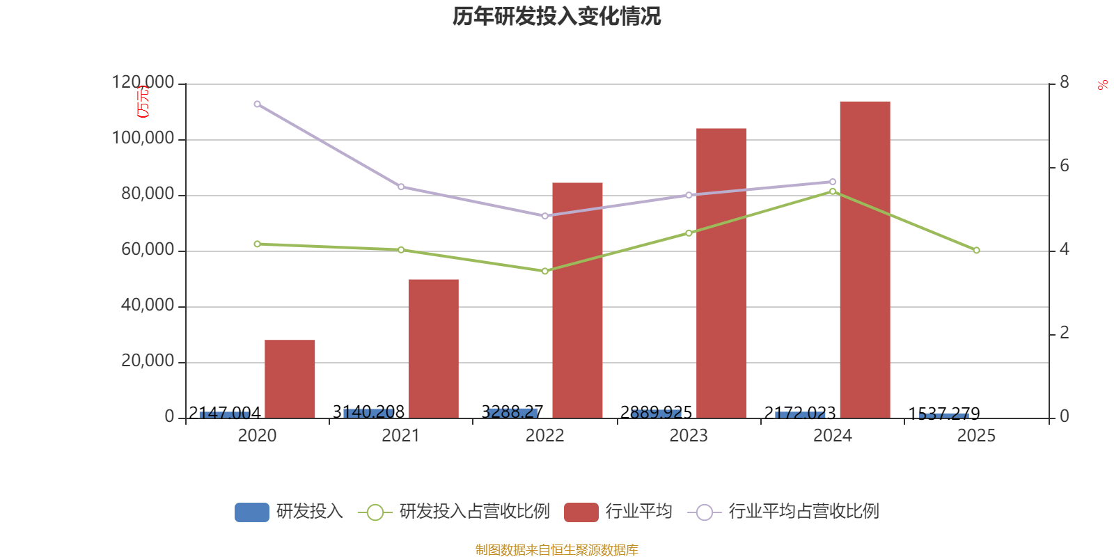 2025年全年,公司研发投入金额为1537.28万元,同比下降29.22%;研发投入占营业收入比例为4.01%,相比上年同期下降1.41个百分点。此外,公司全年研发投入资本化率为0%。