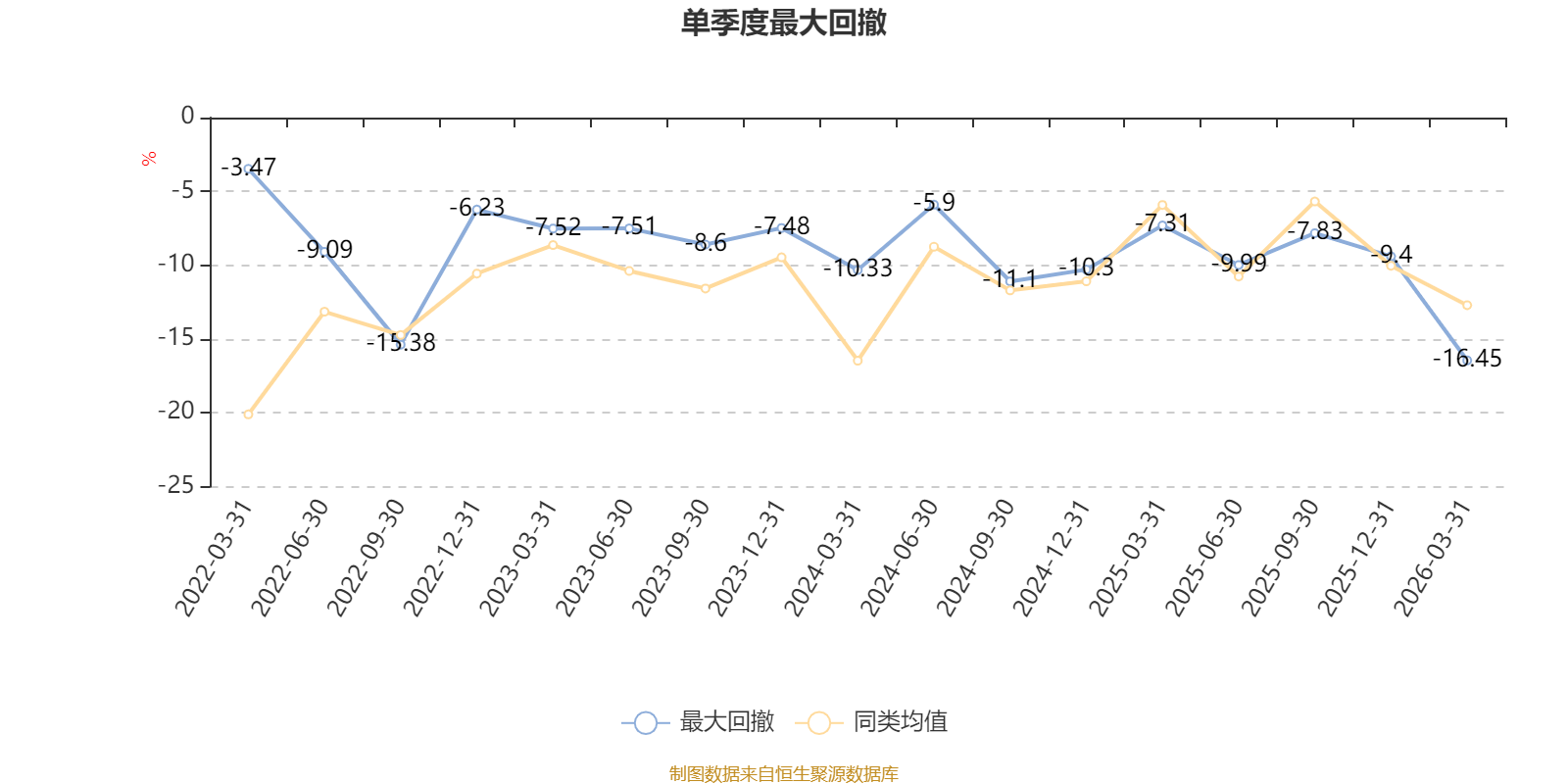 截至4月8日,基金近三年最大回撤为23.42%,同类可比基金排名59/550。单季度最大回撤出现在2026年一季度,为16.45%。